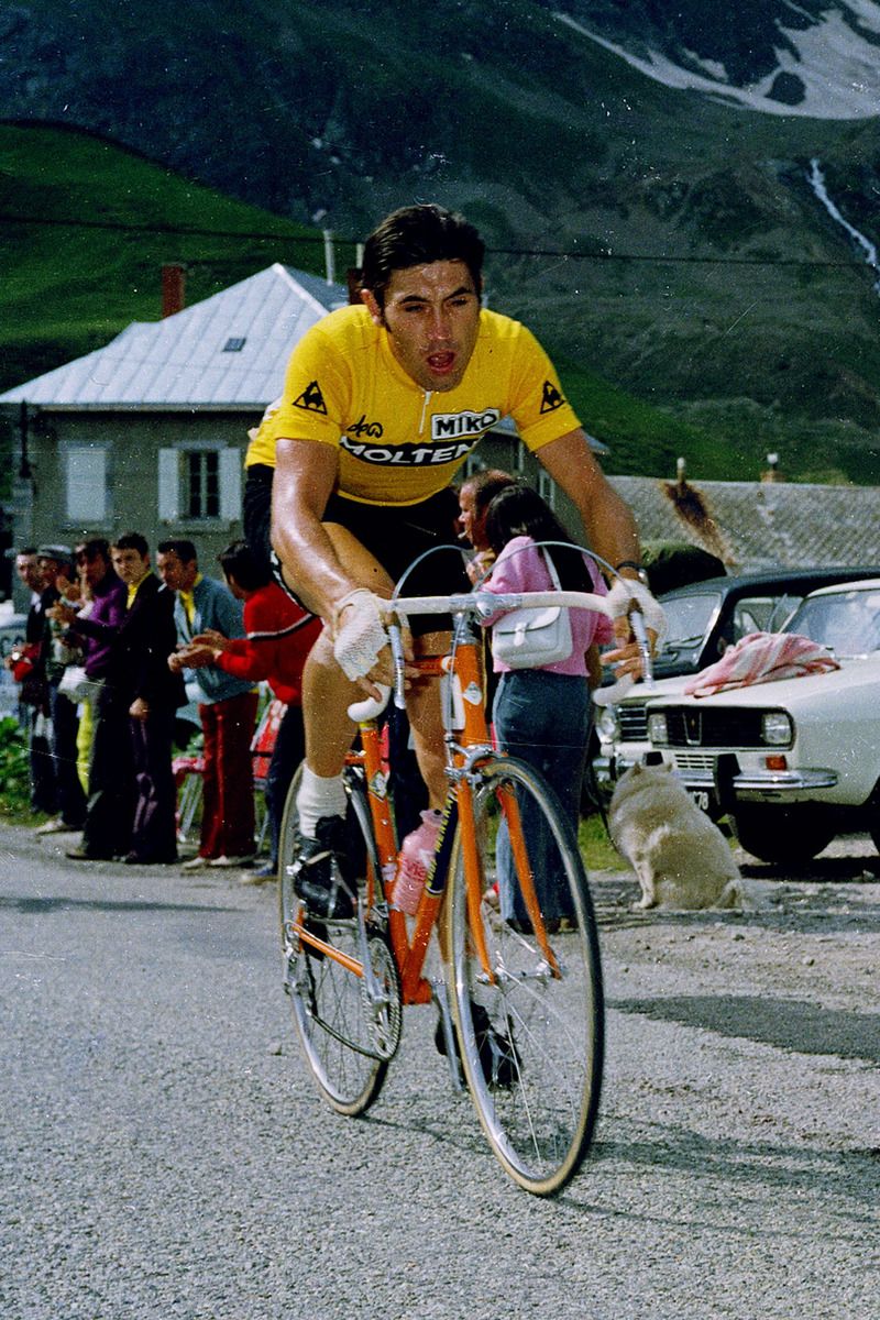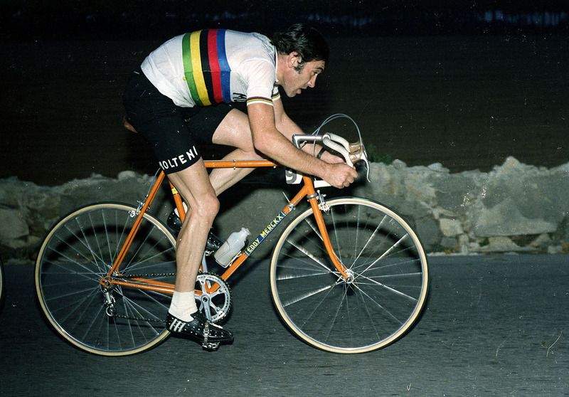 Das Bild selbst wird so auf ca. 1974/75 ( Weltmeistertrikot ) von mir geschätzt . Was ist es dann für ein Rahmen im Bild ? Kessels , de Rosa oder Colnago ? Ich tippe mal gefühlt wegen 1974/75 auf de Rosa .