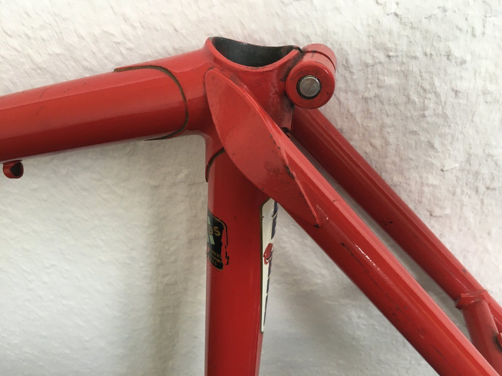 Sehr nice! :) Bei mir kam heute Mittag auch ein rotes Rahmenset mit Chromsocken an. 2cm größer wäre mir lieber gewesen, aber diese Teile sind derart selten dass ich dafür sogar ein wunderschönes Gitane Olympic-Rahmenset verkauft habe - c‘est la vie.