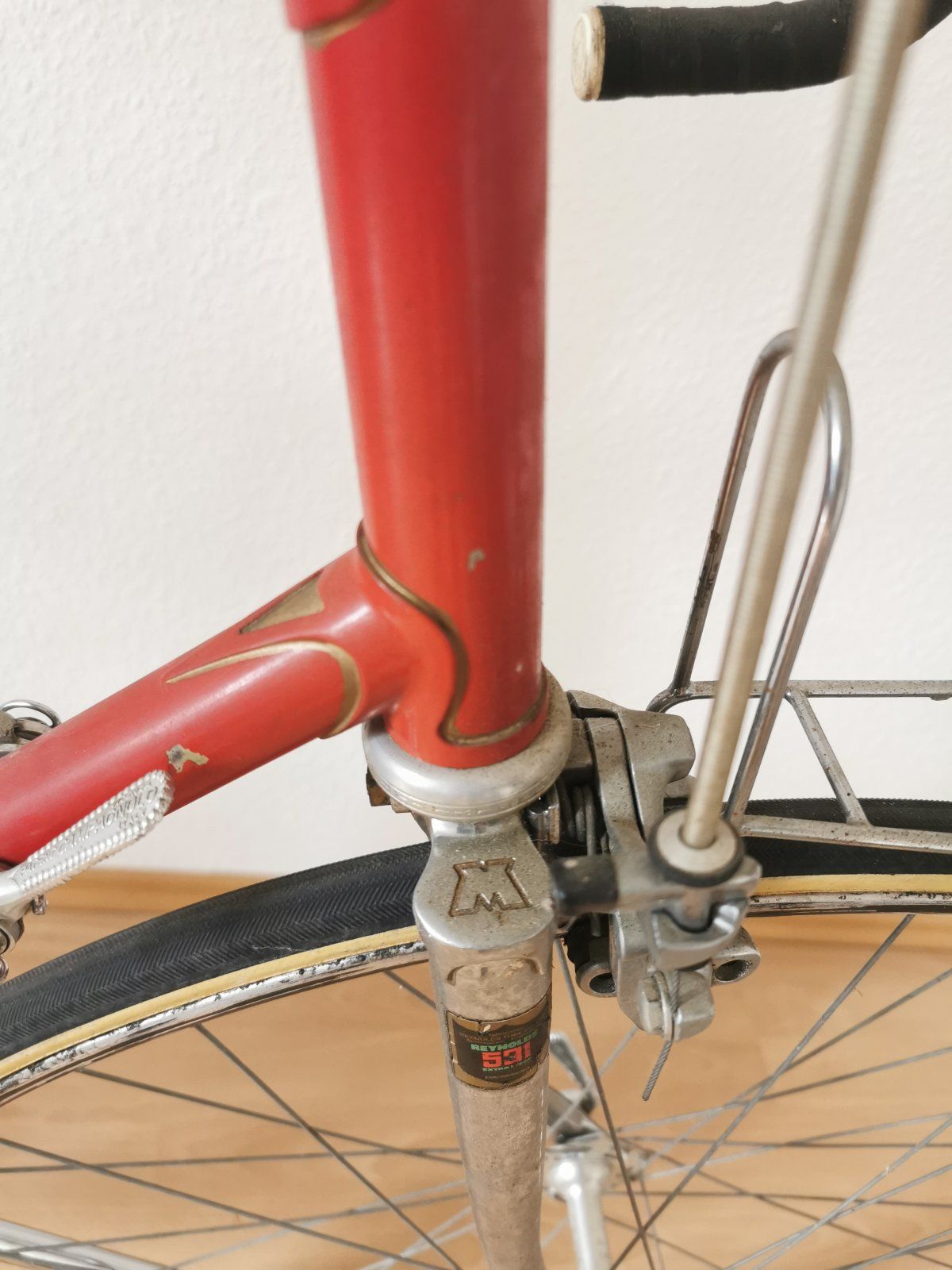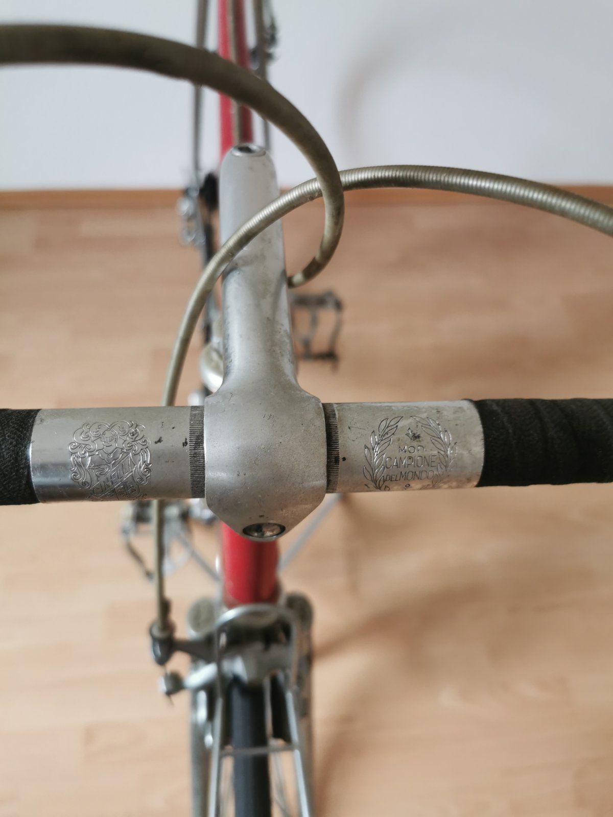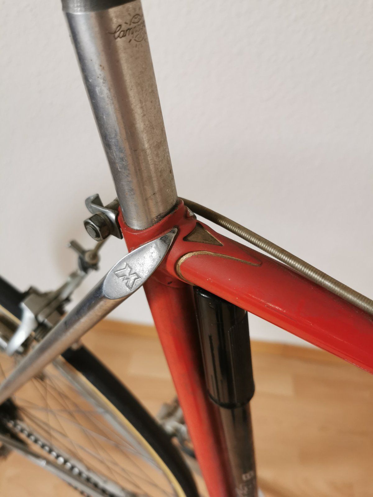 Das Rad ist mir gleich aufgefallen als es ganz frisch eingestellt wurde. CLB-Professionals, TA-Kurbel, Cinelli Lenker mit dem alten Logo, bearbeitete Campa Hebel etc. Wegen den schlechten Bildern des Verkäufers konnte ich nicht sagen, von wem der Rahmen kommt. Habe erstmal an Flandria gedacht, auch wenn es mir komisch vorkam. Darum hatte ich es nur auf der Beobachtungsliste und habe mir irgendwann einen Ruck gegeben und nochmal den Verkäufer angeschrieben. Dieser hat mir dann etwas bessere Bilder geschickt und als ich die Strebenanlegung gesehen habe, war für mich klar, dass ich das Rad nehmen MUSS
