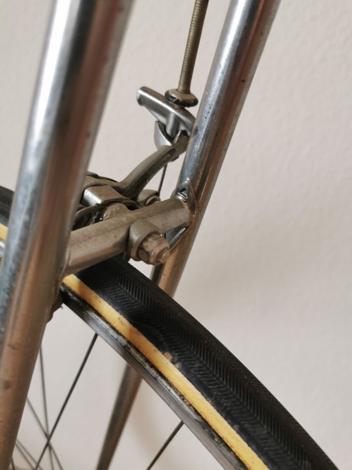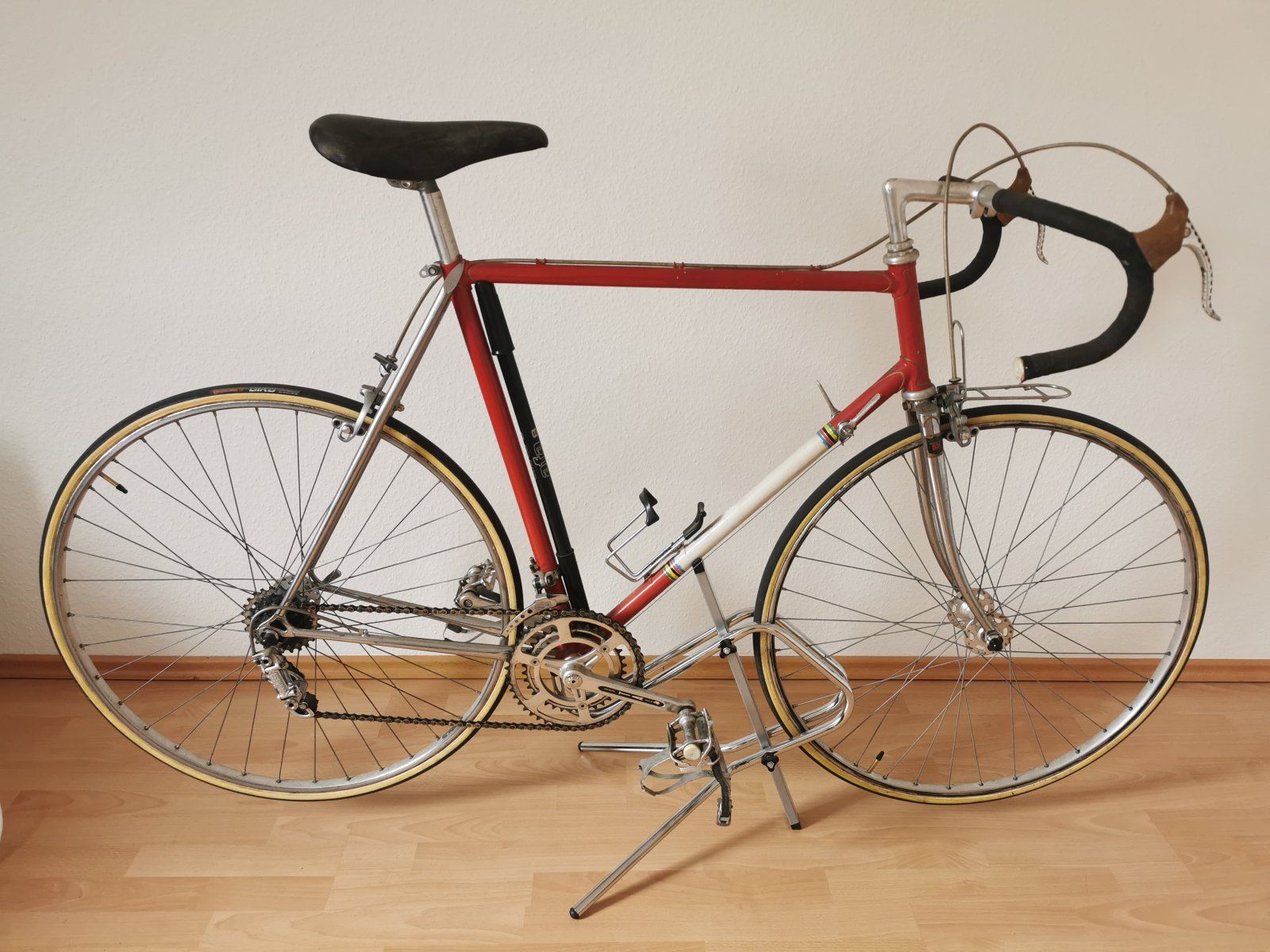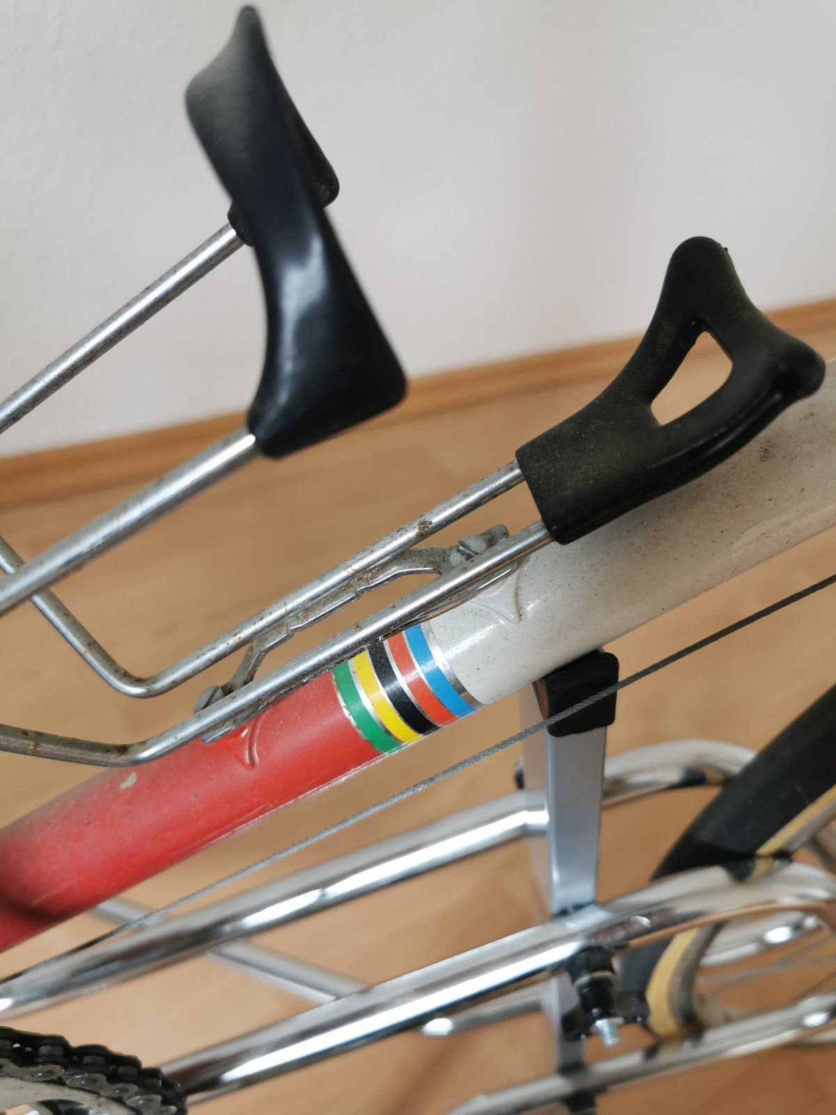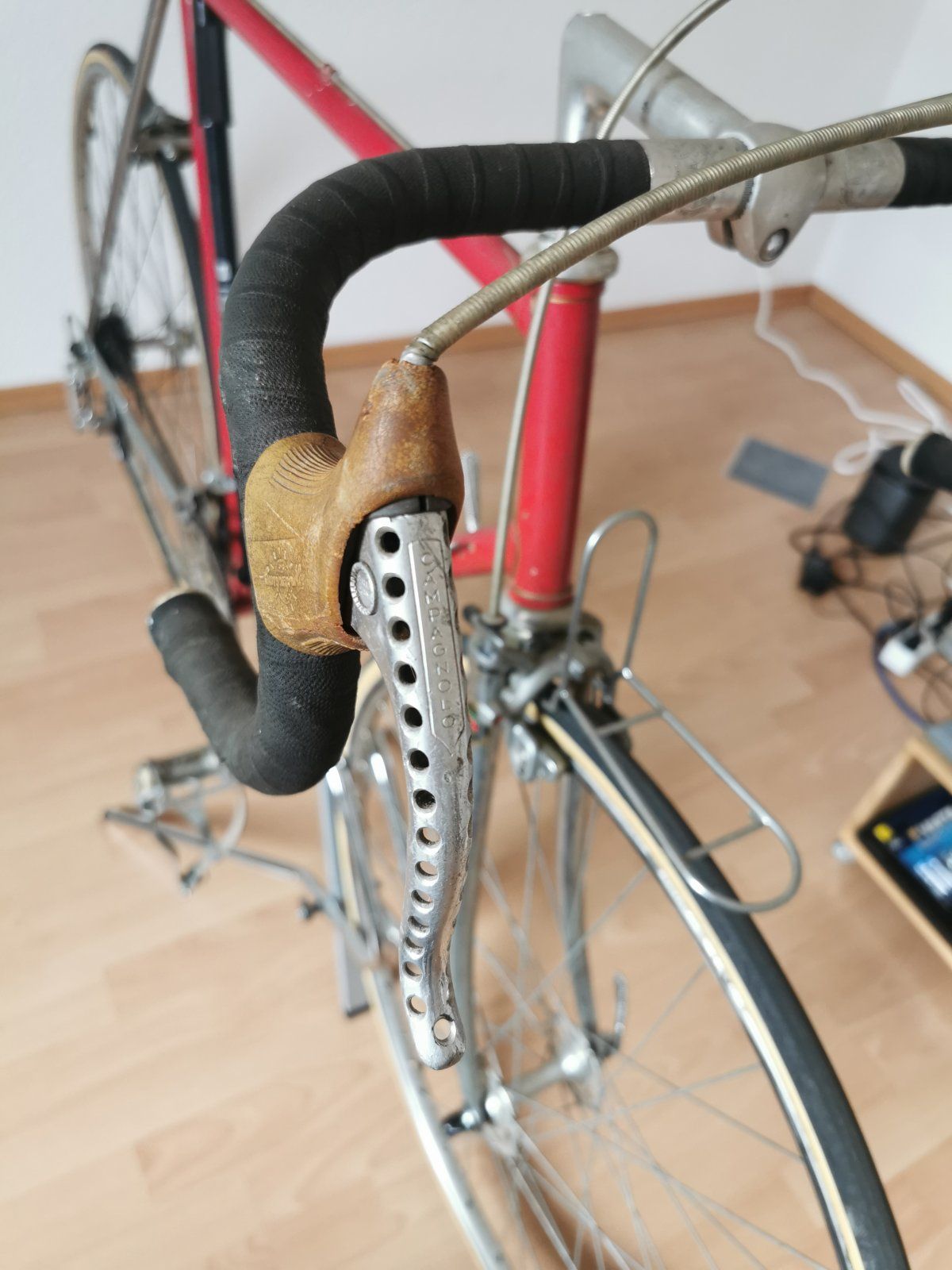 Das Rad ist mir gleich aufgefallen als es ganz frisch eingestellt wurde. CLB-Professionals, TA-Kurbel, Cinelli Lenker mit dem alten Logo, bearbeitete Campa Hebel etc. Wegen den schlechten Bildern des Verkäufers konnte ich nicht sagen, von wem der Rahmen kommt. Habe erstmal an Flandria gedacht, auch wenn es mir komisch vorkam. Darum hatte ich es nur auf der Beobachtungsliste und habe mir irgendwann einen Ruck gegeben und nochmal den Verkäufer angeschrieben. Dieser hat mir dann etwas bessere Bilder geschickt und als ich die Strebenanlegung gesehen habe, war für mich klar, dass ich das Rad nehmen MUSS