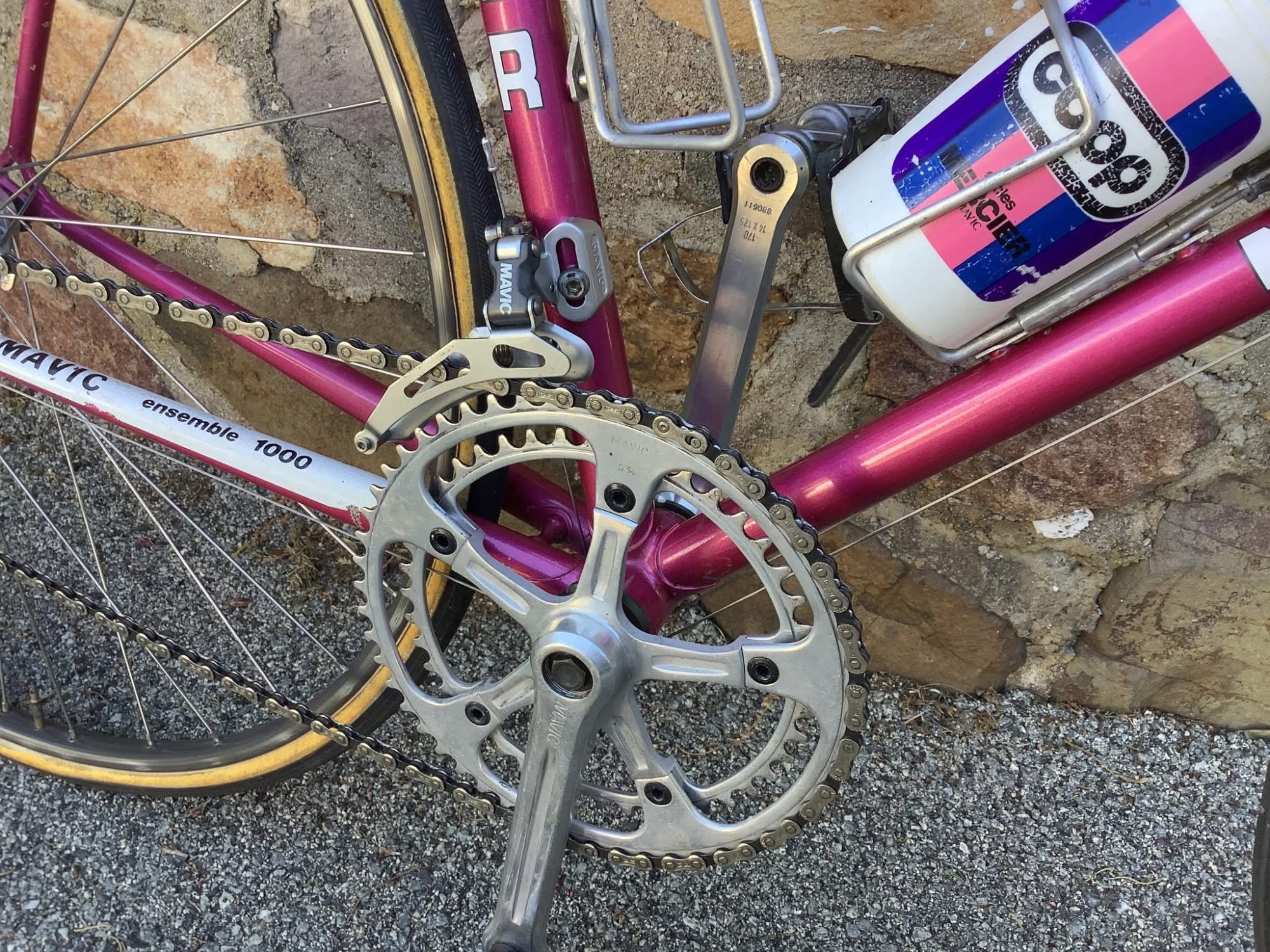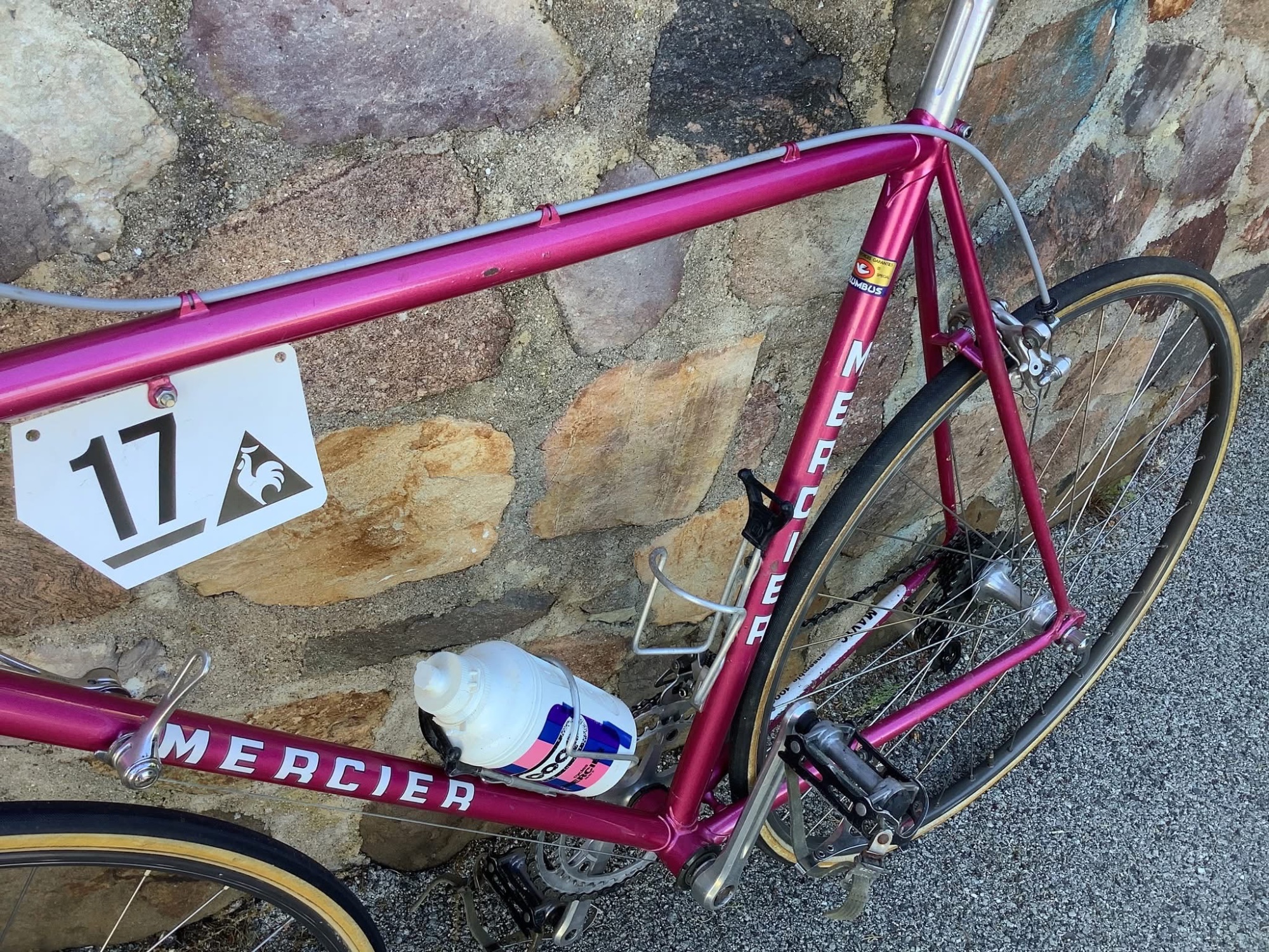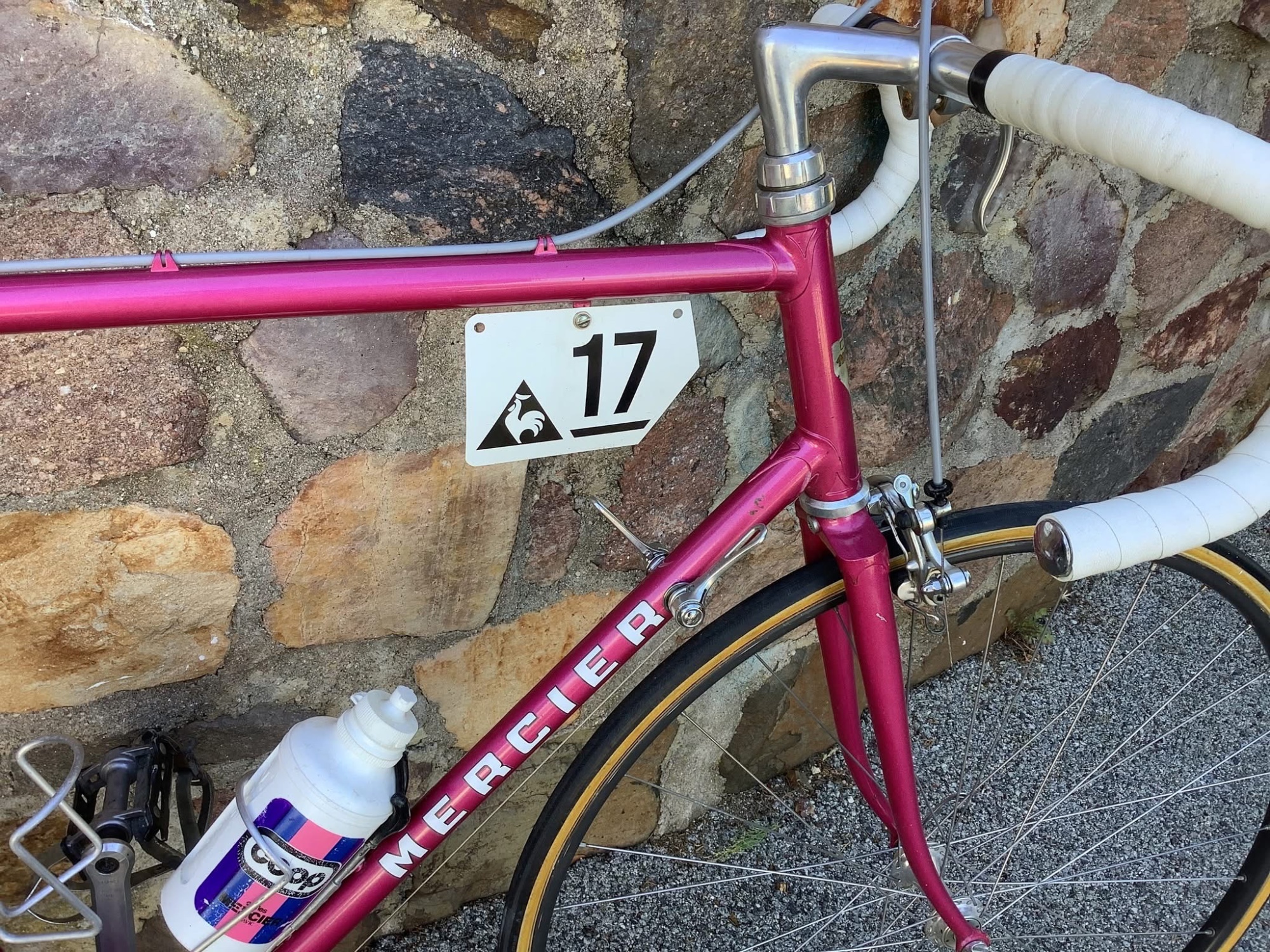 Es gab da bei den Team Rädern um 1982 aber durchaus Variationen wenn ich das richtig sehe. Hier bei diesem Team Rad von Jean Louis Gauthier sind zB die Kabelführungen anders. Am auffälligsten ist die komplett andere Gabel die hier auch verchromt ist und den Mercier Schriftzug trägt.Coop-Mercier 1982 für Vichot
