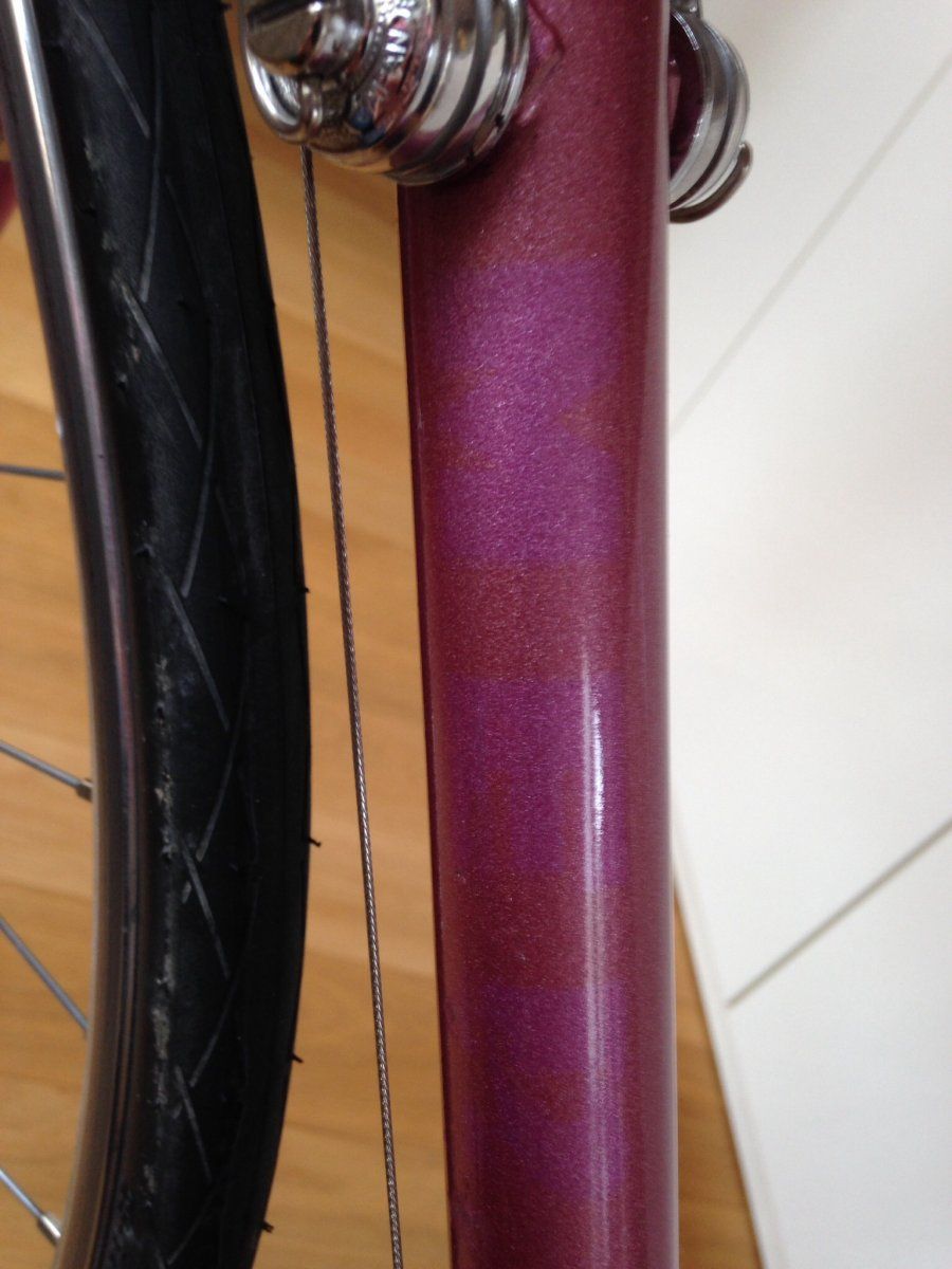 Den Schriftzug am Oberrohr könnte ich zwar in einem abziehen, dafür blieb aber der ganze Kleber drauf, ich hab's mit Schaben, Polieren etc. versucht, zum Schluss sogar mit Aceton, da ging nix. Bis meine Frau das Gefluche nicht mehr mit anhören wollte und ihren Nagellackentferner (Achtung, acetonfrei!!) gezückt hat. Das ging super damit runter. Kleiner Tipp am Rande, nach dem Nagellackentferner mit einem leicht flusenden Tuch über die gereinigten Stellen, die Flusen bleiben dann an den Kleberesten hängen und man sieht sehr gut wo man nacharbeiten muss.