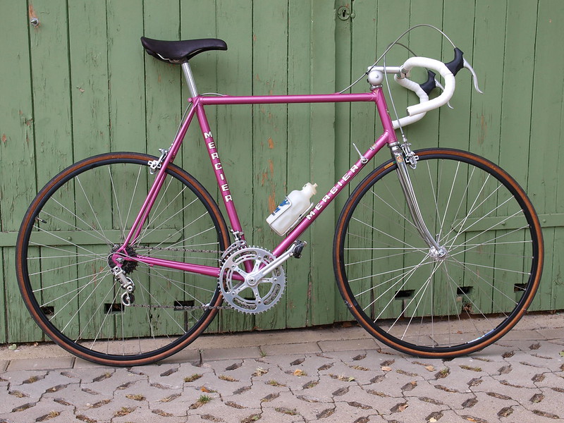 Wow! Es ist doch noch gar nicht WeihnachtenTeamrad aus 1982 des Teams Mercier Mavic Coop. Fahrer noch unbekannt. Der Zustand ist stark patiniert, wird aber so konserviert. Aufbau erfolgt mit einer kompletten Mavic Gruppe, sieht dann in etwa so aus: