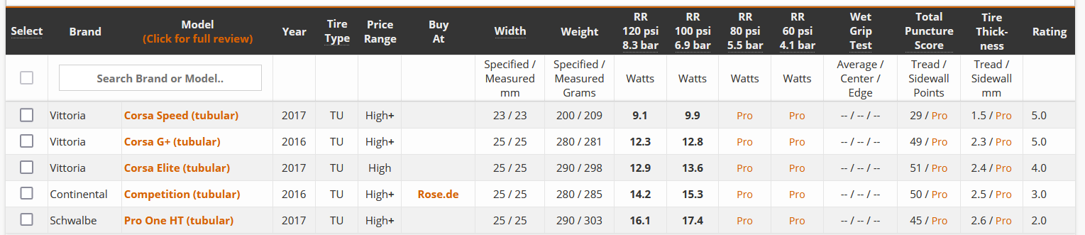Die paar wenigen bei BRR gelisteten Schlauchreifen haben einen Rollwiderstand zwischen 9,9w und 17,4w bei 100 psi. Da ist eine der beiden Klebetechniken ja bereits enthalten. Wenn man annimmt, dass die