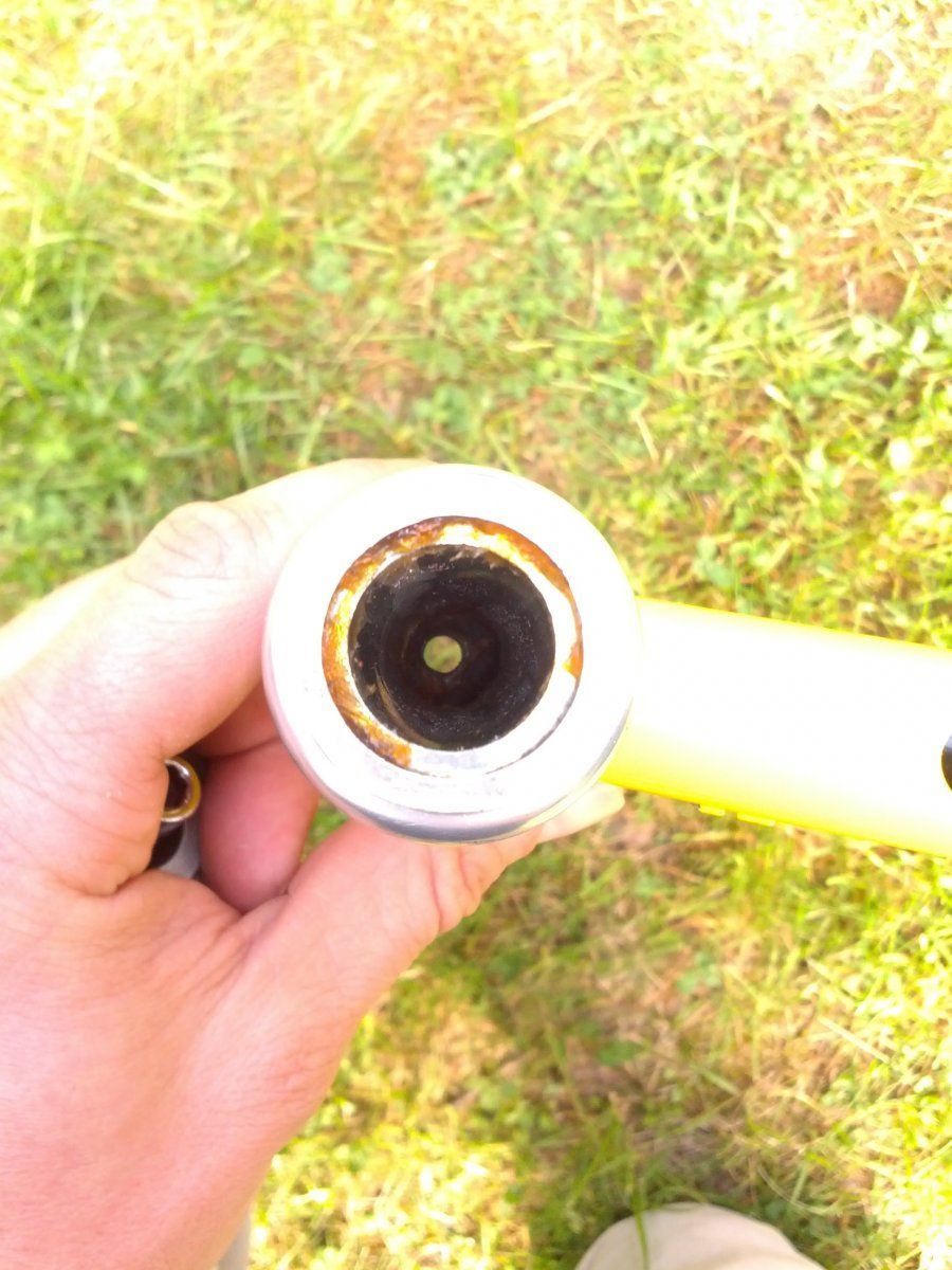 das ist nicht das erste gebrauchte rad, das ich auseinanderbaue, aber das habe ich noch nie gesehen. ich hab im ersten moment an etwas gedacht wie getrocknete erde oder so. nicht genau, aber die richtung. es gibt wenige größere halbrunde