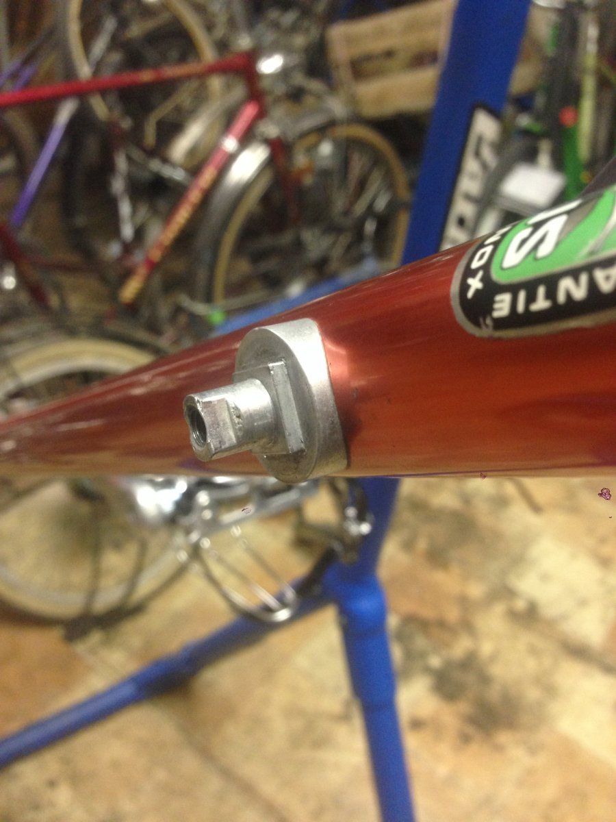 Die Befestigungsmutter festschrauben. Anschließen den Inbus auf der Vorderseite der Bremse ansetzen und diese mittig zentrieren. Dabei ist es wichtig, vorne nur rechts herum zu drehen, sonst lockert sich die Beestigungsmutter wieder. Danach sollte die Bremse zentriert sein.