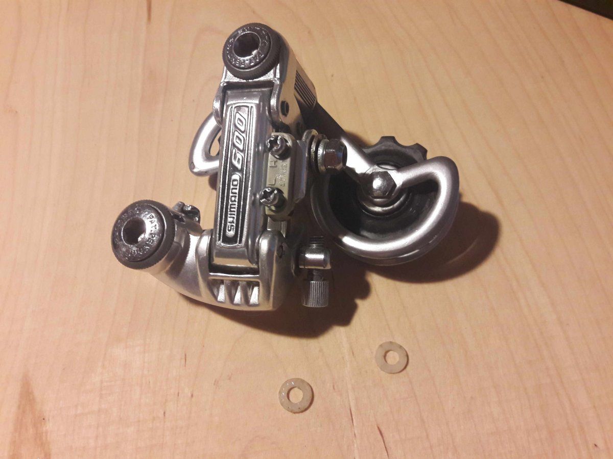 Hattest du auch das Parallelogramm auseinander, ist das bei diesem Schaltwerk geschraubt? Dann sind die Scheiben vielleicht als Gleitlager dazwischen gedacht.Gestern habe ich dieses 600er Schalwerk komplett auseinander genommen. Nach dem Zusammenbau sind diese Scheiben übrig geblieben, ich kann mich leider nicht mehr erinnern, woher sie kamen. Vielleicht hat jemand eine Idee? Unter die Stellschräubchen passen sie nicht.