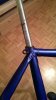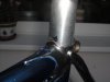 gibt´s eine runde 27,2 mm-Sattelmuffe , die aber dann in das ovale Sitzrohr übergeht, sodass eine 27,2 mm-Stütze nicht weiter heingeht, als die Muffe hoch ist. Original war das mit einem Kunststoffformteil und einer 22 mm-Stahlkerze gelöst, was mir aber überhaupt nicht gefällt: