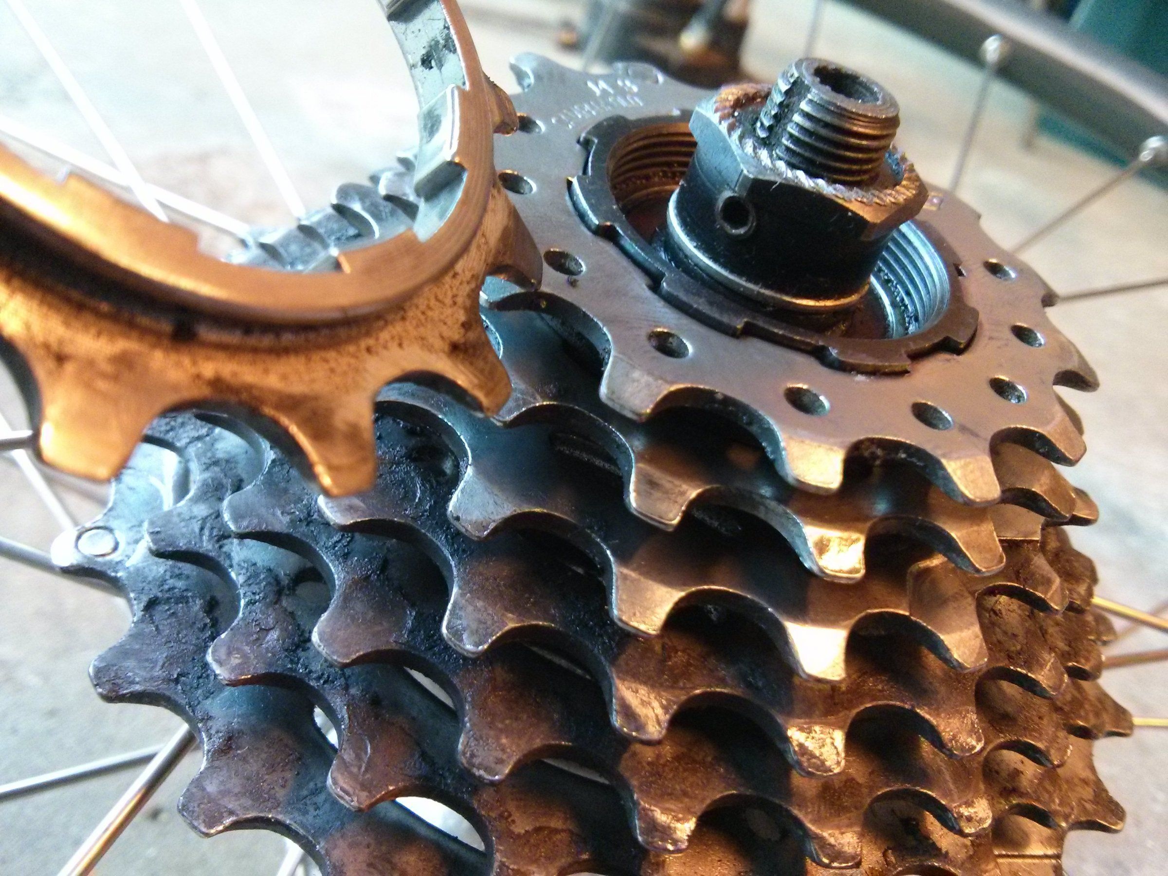 Nee. Bevor Du die Kassette auf den Freilauf steckst, kommt zuerst diese kleine Scheibe, dann die Kassette. Also zwischen größtem Ritzel und den Speichen.also zwischen kleinstes ritzel und abschlussteil?