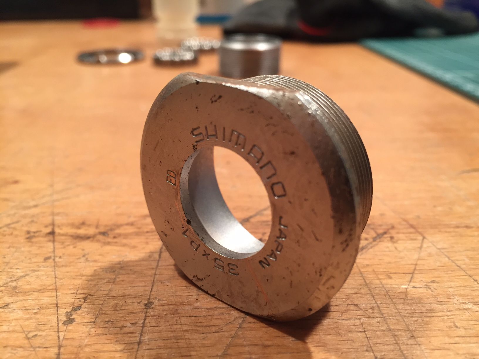 Leider nein, da ist kein Gewindegang mehr über. Ist ein Dura Ace 7100 oder 7200 (kann ich grad nicht nachsehen) mit 107mm Welle. Kann man daher vielleicht das Schweizer Gewinde ausschließen oder hat Shimano sowas auch gebaut?Da alles andere draußen ist: von der anderen Seite her schauen/fühlen.![]()