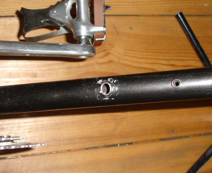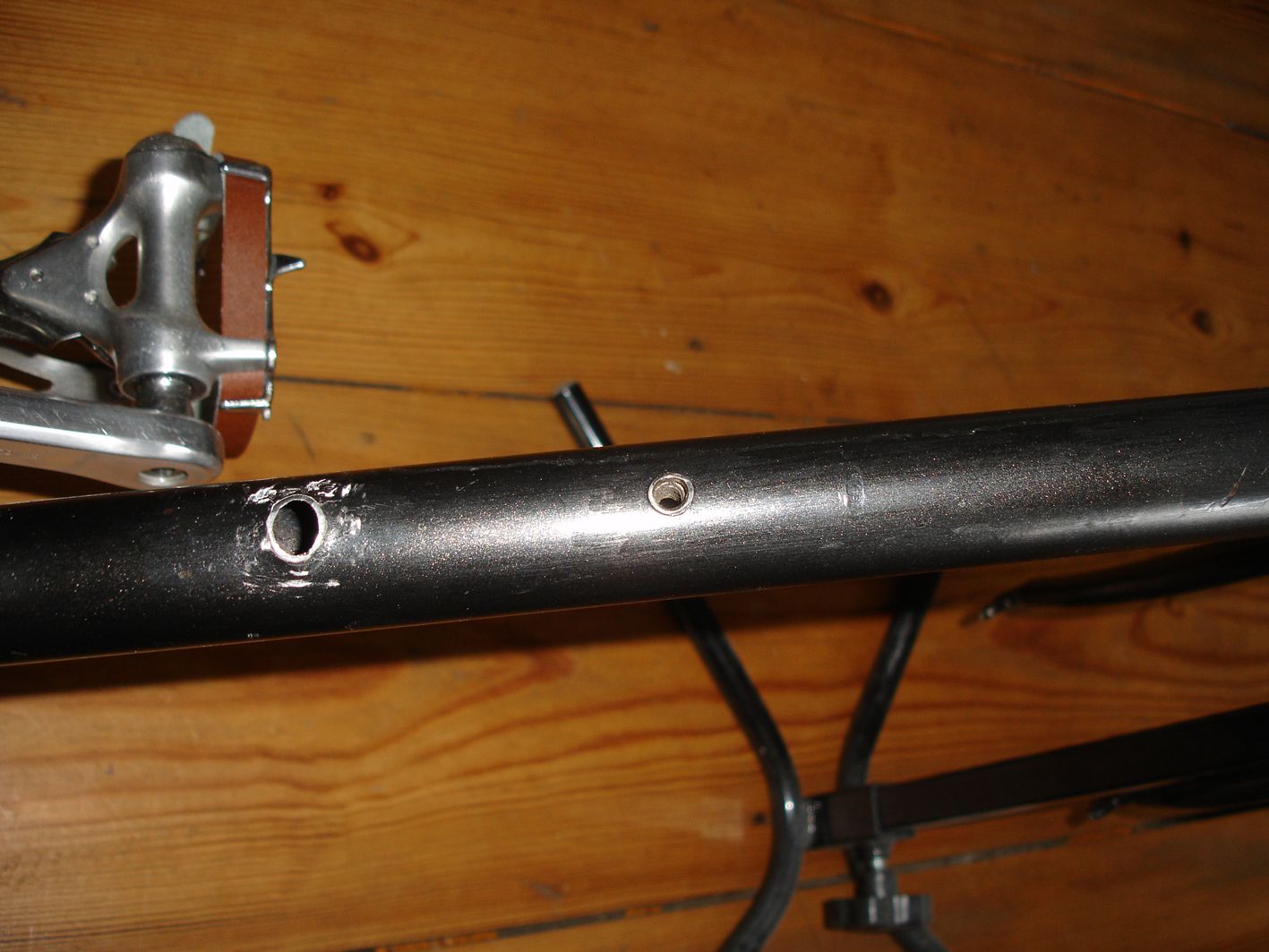 Und bei dem großen Loch ? Was kann ich da machen ? sauber aufbohren und größeres Gewinde + Schraube dachte ich. Mir gehts mitlerweile nur noch darum das der Rahmen hält -.-