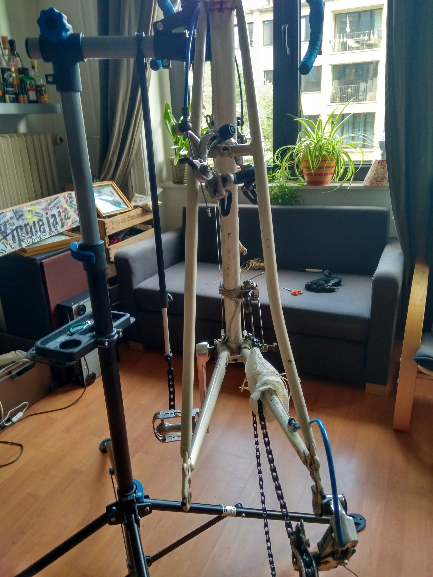 Danke für die Tipps! Hab leider keine lose HR-Nabe und keinen Platz fürn ganzes Hinterrad, brauche den Platz zum arbeiten. Hab einfach ein Stück Holz in entsprechender Breite zwischen die Ausfaller geklemmt und Versuche es gerade mit n paar Hölzern und nem Spanngurt wieder grade zu ziehen... Absurd widerspenstig diese Mannesmann Heizungsrohre! Komme maximal Millimeterweise voran!