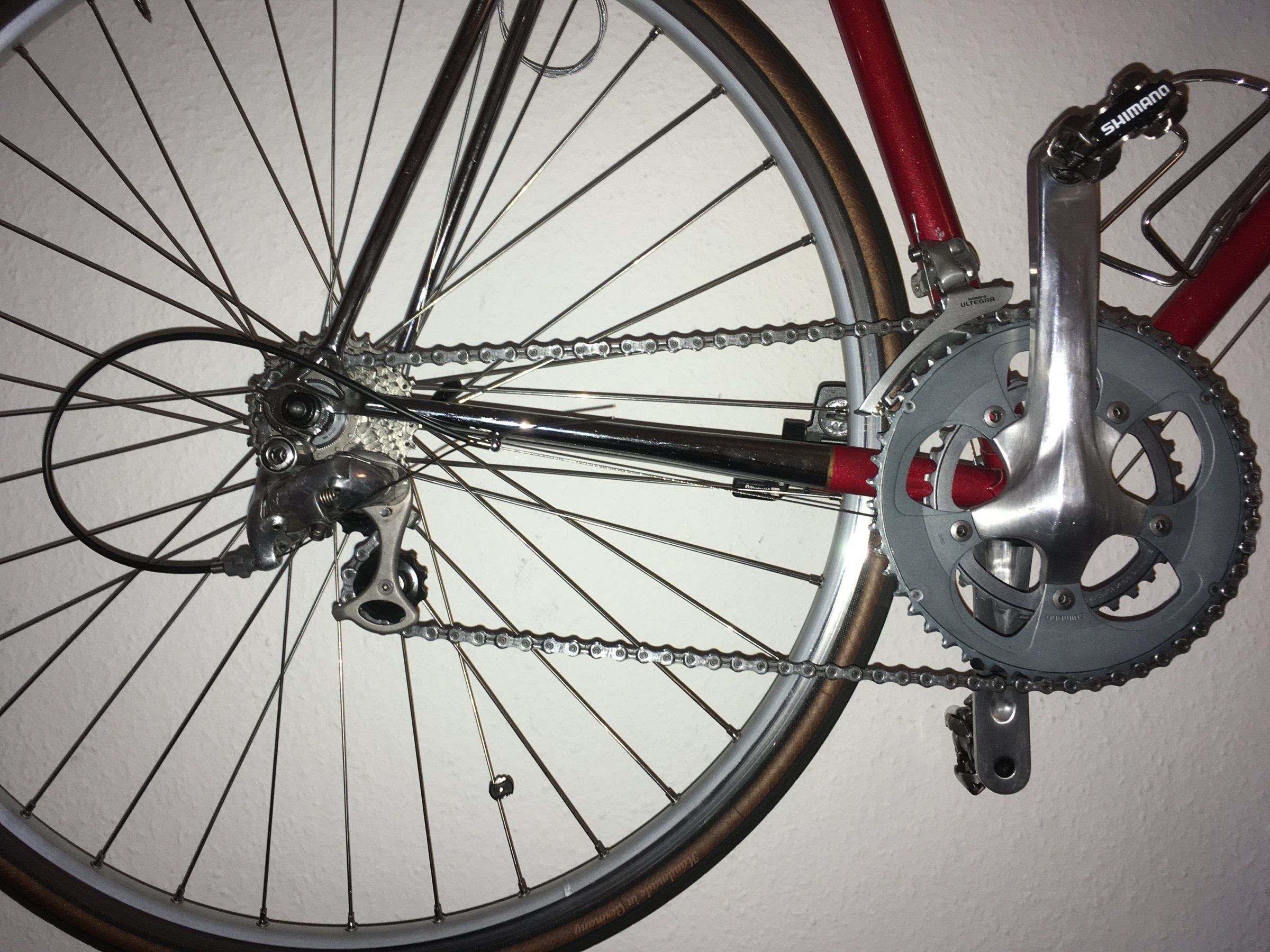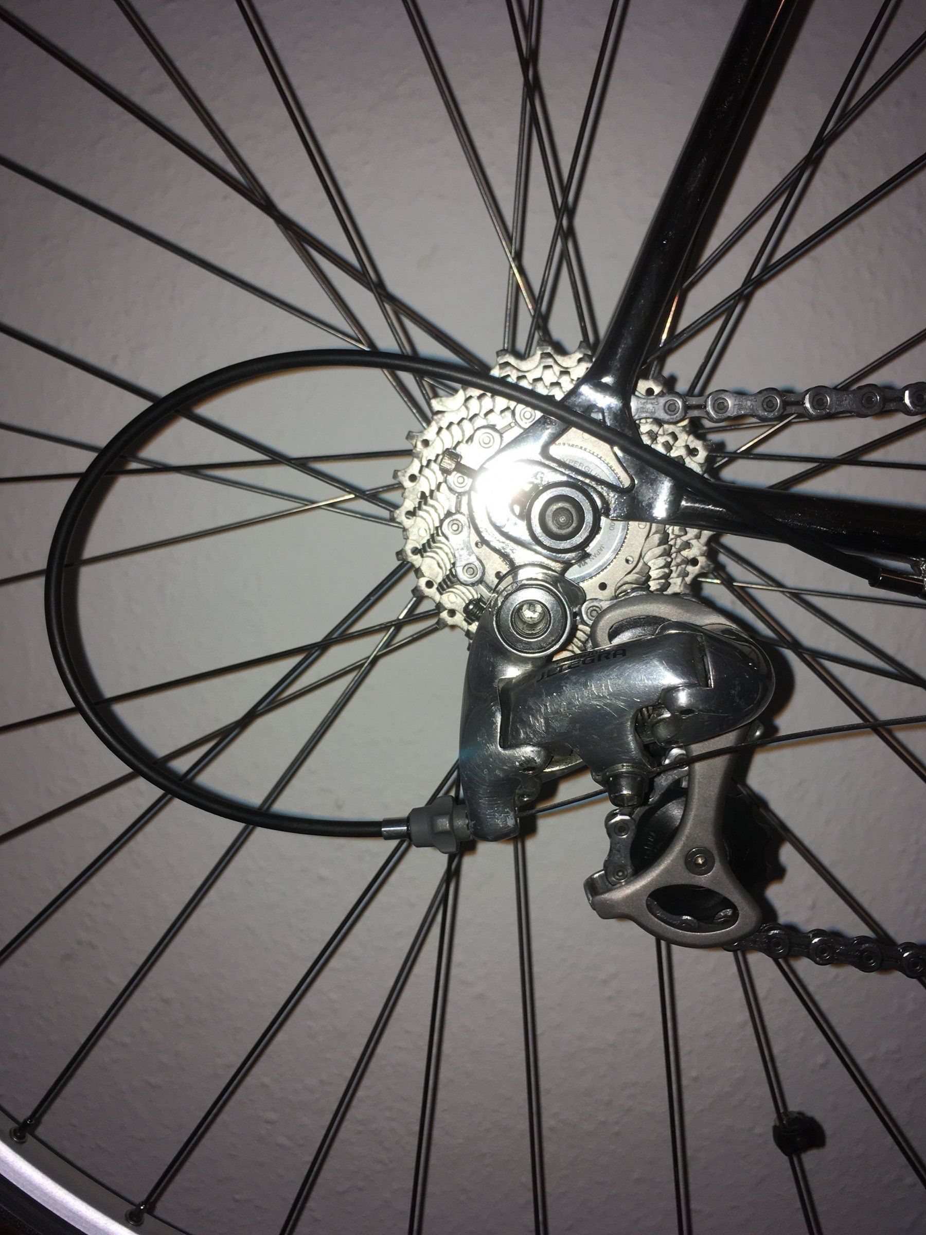 Umstieg von 6500er Gruppe auf 6600er Gruppe. RD-6500 SS, CS 6700 (14-25), CS 6600 (12-23), CS 5600 (11-28), FC-4650 (50-34 compact), FD 6500, CN-6701. Stahlrahmen aus den 80er mit Ösen für eine Rahmenschaltung. Schaltung lässt sich nicht exakt einstellen, entweder zu viel oder zu wenig Spannung auf dem Zug. Kette schleift oder schaltet erst mit leichten Trimmen in den Gang, dann aber schleiffrei. Eine exakte Ausrichtung gelingt mir nicht.