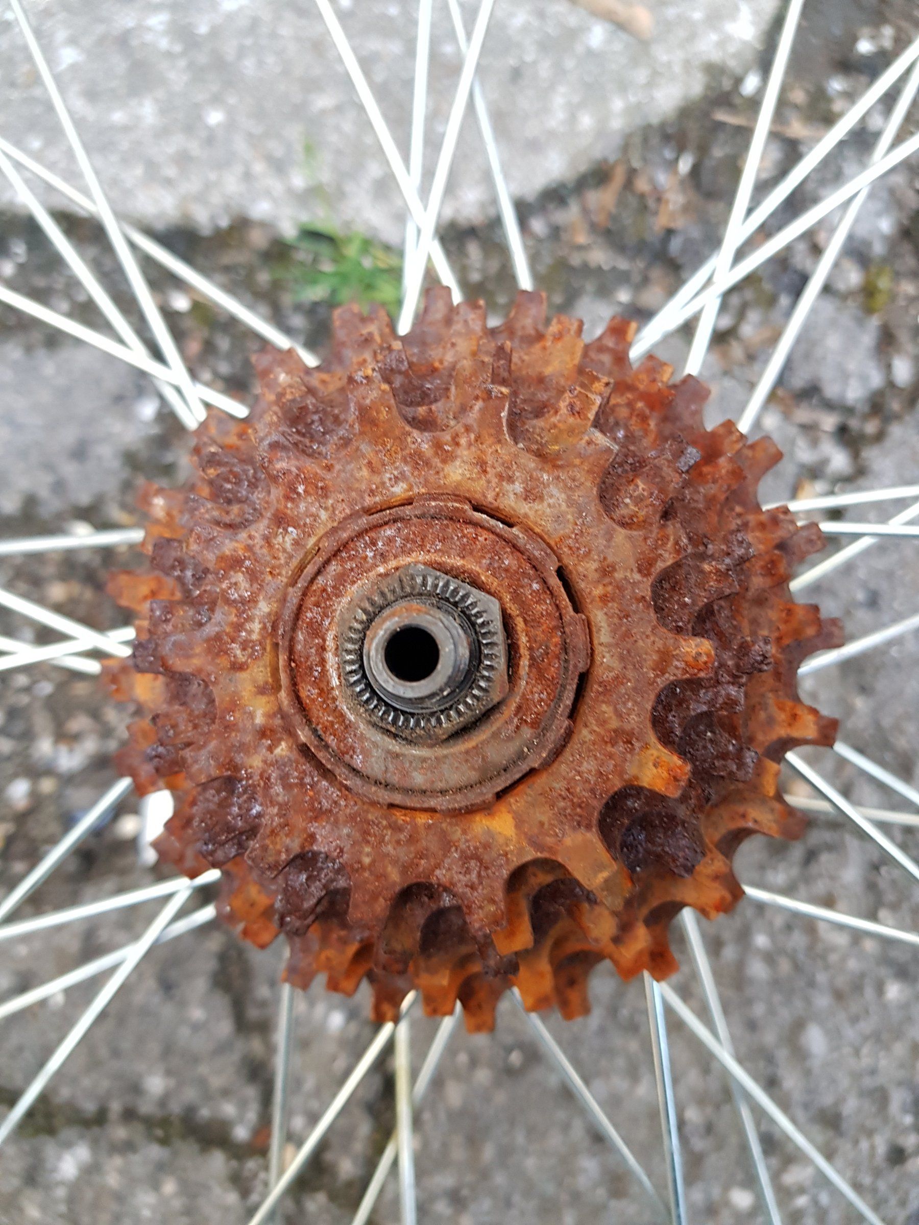 Sieht mir nach Shimano UG aus. Brauchst du zwei Kettenpeitschen für. Mit der einen hältst du eines der hinteren Ritzel fest und mit der anderen löst du das kleinste Ritzel vorn. Feddisch