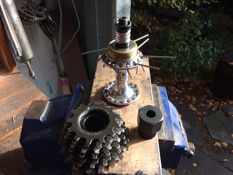 (ah, dieses Wort !) dranhängen. Vor einiger Zeit hab ich eine 600er Nabe, die schon 130mm hatte, mit einem 8/9/10f Freilaufkörper bestückt. Der hat aber ein anderes Dichtungssystem als der alte UG/HG 7fach. Weil ich also den alten achsseitigen Konus nicht verwenden konnte, habe ich einen in meinem Kruuscht (wie schreibmanas?) gefunden, der auch noch gut war. Der hat eine festsitzende Abdeckkappe und zum Konus hin einen gleichbleibend dicken "Zylinder". Dieser nun schleift gaaanz leicht an der Dichtung des Freilaufkörper, so dass der sich hin&her bewegen lässt mit der Achse (das bisschen zwischen den Sperrklinken). Beim Treten bzw Antrieb nat. nicht! Muss man bzw ich s/m/i/ch/r