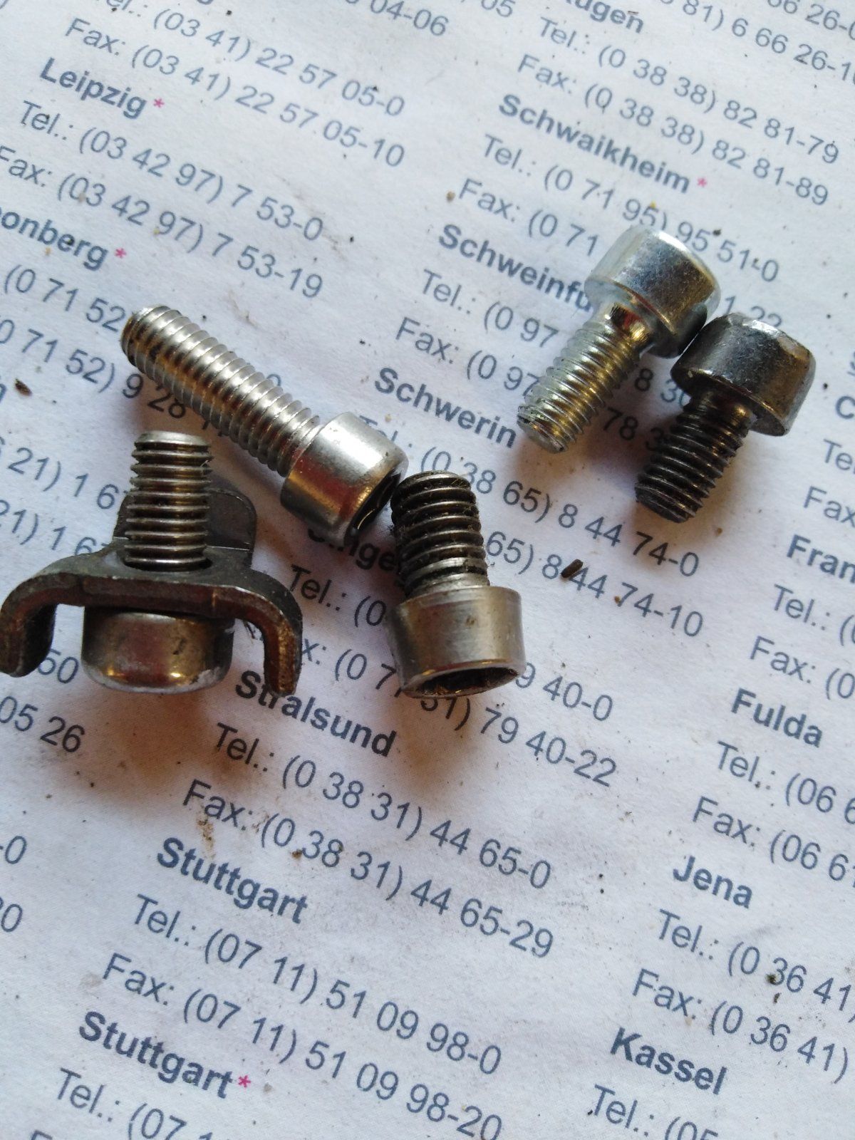 Die Hutmutter mit Bolzen und Scheibe hab ich auch. Kannste auch haben. Oder wie gesagt normale M5-Mutter und Scheibe. Wenn Du sie willst mach UH.