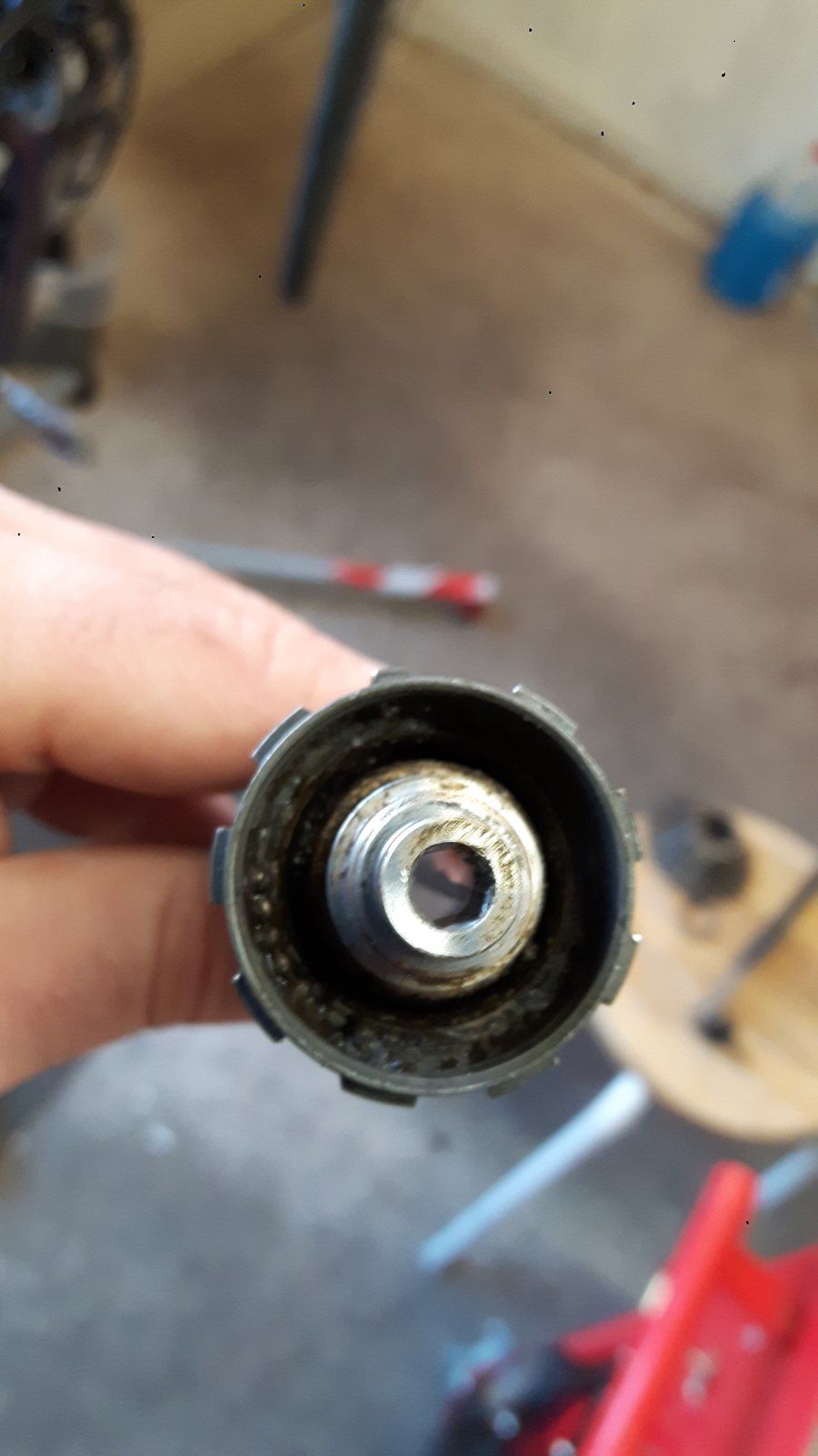 wird schwierig den Hebel zu retten - Durchlag könnte funktionieren du musst die kleine Trommel mit der Öffnung m.A.n. vorher beidseitig punktmäßig in einem Schraubstock spannen damit sich die nicht immer weg dreht oder besser komplett aus dem Hebel vorher ausbauen, wenn das irgendwie geht - aber eine andere Idee hab' ich auch nicht die verklemmte Birne da heraus zu bekommen