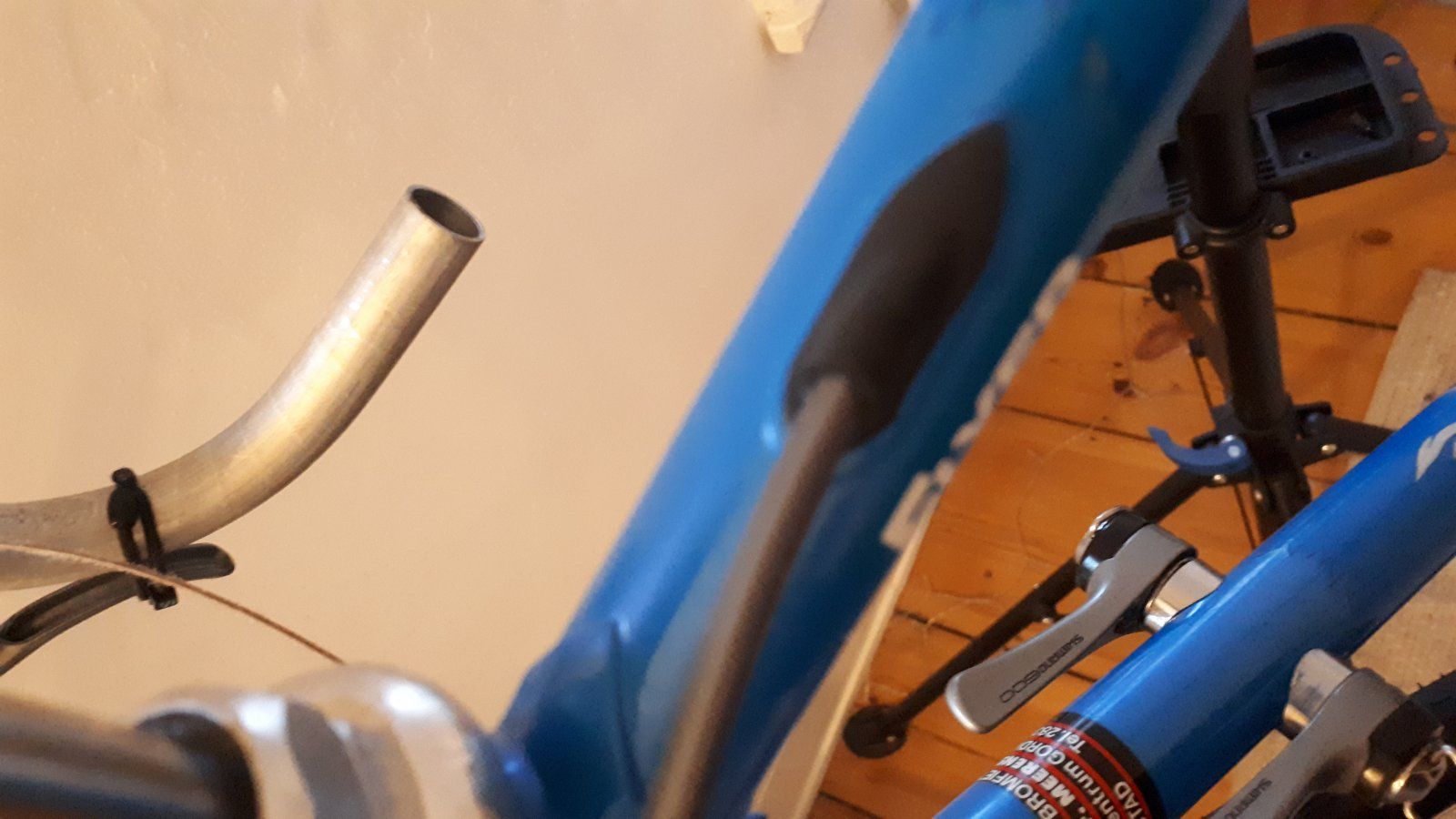 Das heißt, wenn der Zug für die hintere Bremse innenliegend im Oberrohr verläuft (siehe Foto), dann brauche ich das Ding nicht?Es gibt in diesen Sets immer mehrere Anschlaghülsen für verschieden gestaltete Rahmen. Dieser hier ist ein schlag mit einem kleinen Röhrchen z.b. für einen stumpfen Anschlag am Oberrohr, wo man keine abgesetzte Hülse braucht.