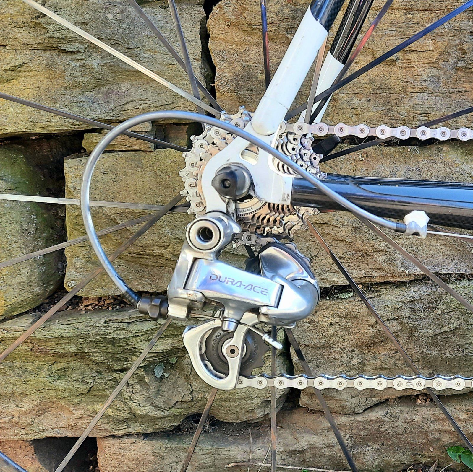 Ich möchte die Stütze nur ungern beschädigen, das Rad ist das ehemalige Rad eines Profis, und die Stütze ist wohl original (den kamerafreundlichen Shimano-Sponsoren-Schriftzug hab ich auch genauso auf den Kurbelarmen). Es ist auch genau meine Größe so, also bevor ich da was ausreibe o.ä., würde ich es wohl dann erstmal noch so lassen. Aber noch gebe ich nicht auf 💪