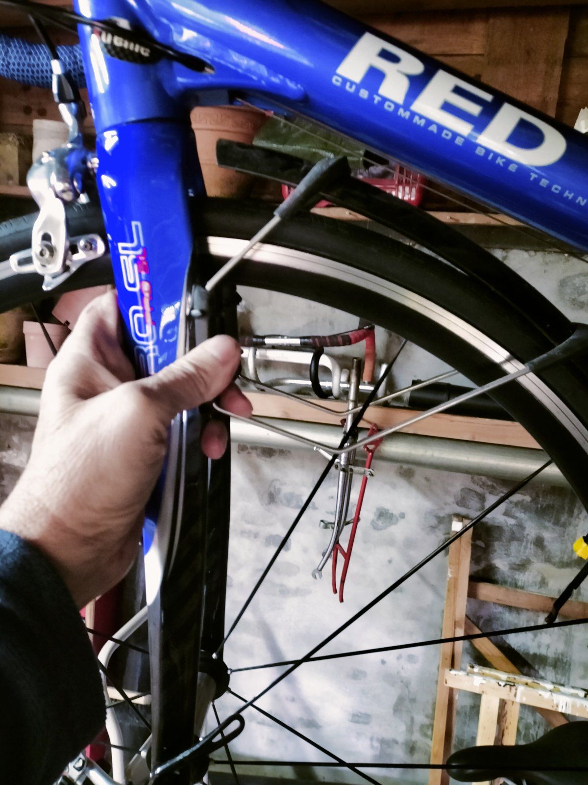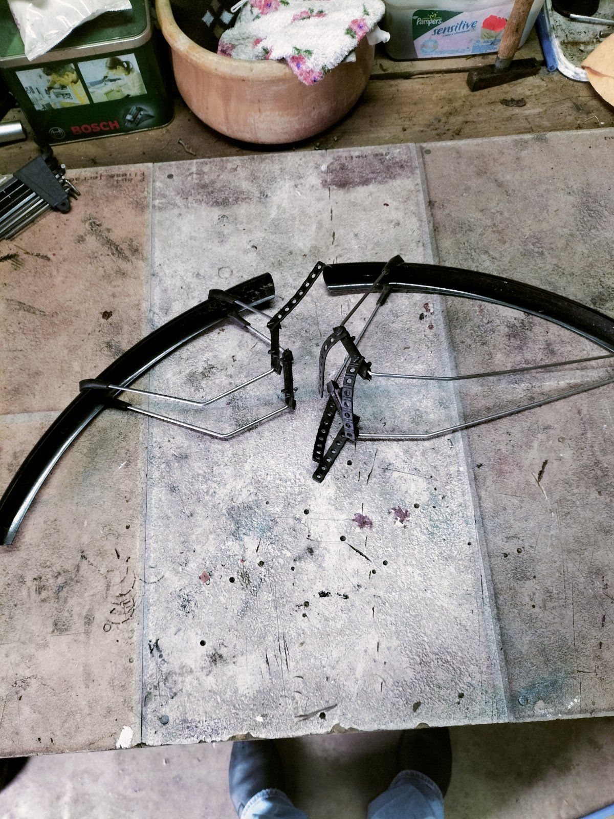 Dummerweise ist der Rahmen trotz Kühlung und Wärmeableitung so warm geworden, dass die Verklebung am Bremssteg sich gelöst hat. Ist also nur noch ein Dekorad ......