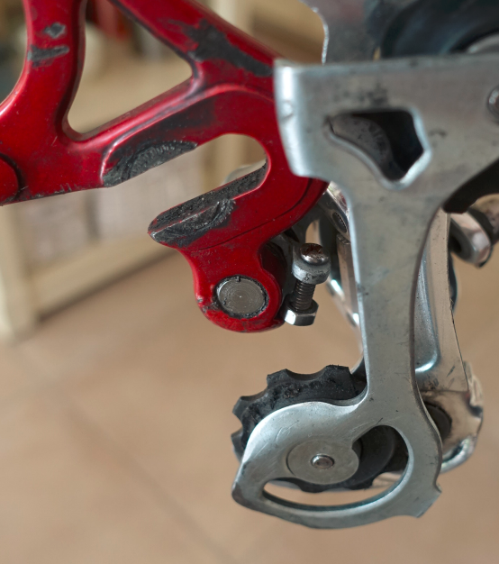 Jetzt ist auf dem 32er Ritzel das obere Schaltröllchen zu nah am Ritzel und es rattert.