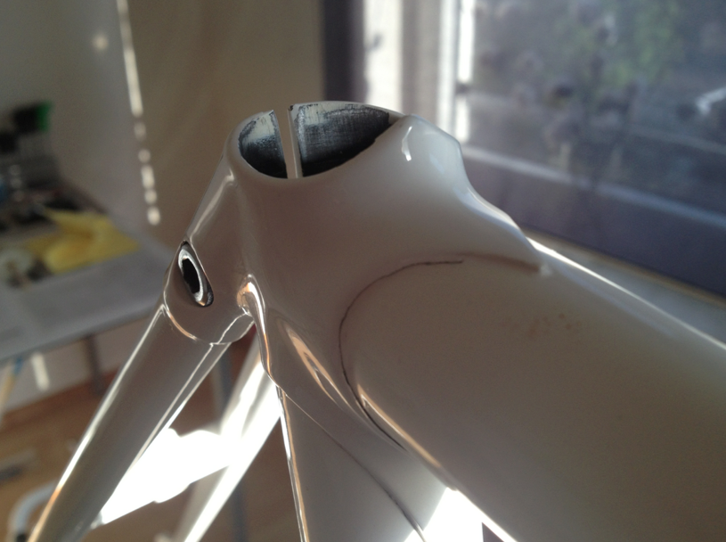 Bianchi-Hilde: Ich habe mal am Oberrohr und Sitzrohr kräftig gerüttelt und gezogen. Das Oberrohr sitzt bombenfest an dieser Stelle. Der Riss geht jedoch fast einmal ganz herum.