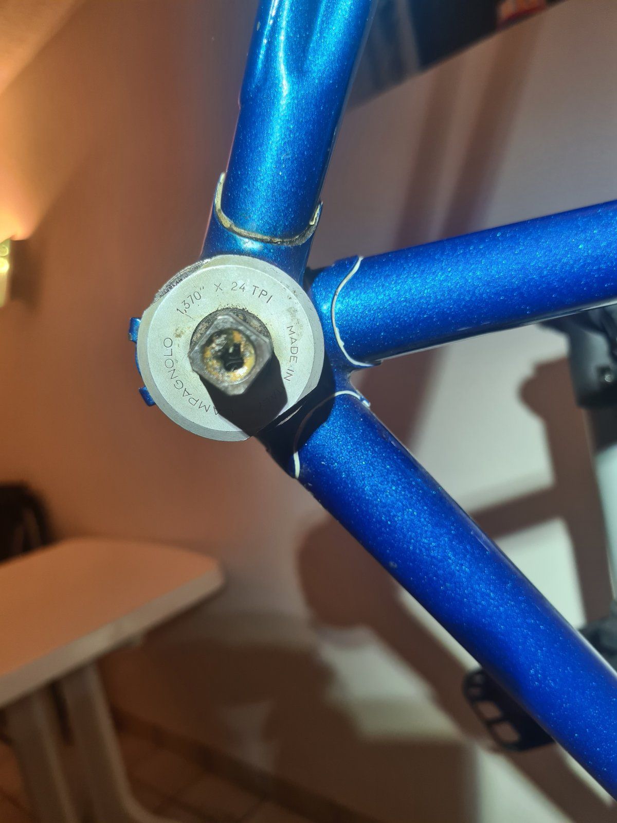 Ist ein BSA. D.h. rechte Lagerschale Linksgewinde d.h. im Uhrzeigersinn aufschrauben.Als Erstsemester in Campagnologie bin ich mir bzgl. des Gewindes der rechten Lagerschale unsicher, die sich ordentlich ziert. Hat die wohl ein Links- oder Rechtsgewinde? Wäre wohl besser zu wissen, bevor ich etwas mehr Gewalt einfließen lasse. Gibt es ggf. Hinweise, wie die zu lösen ist?