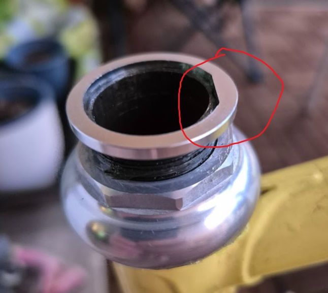 ich verstehe es so, dass jetzt der Ring kommt. dabei hat der so eine Nase (rot) und passt nicht übers Gewinde der Gabel? was übersehe ich?