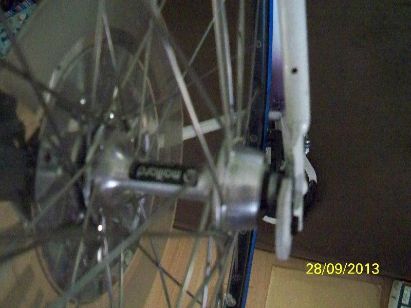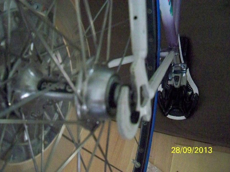 Jetzt geht es weiter ich nehme das original HR womit ich auf der Rolle fahre. schliesse es. das Ding sitzt bombenfest. sprich kein Problem. siehe bilder das ist das originalk sachs Maillard HR was dem Peugeot original dabei war. nehme ich ein anderes wo ich denke die Achslänge ist fast die gleiche schliesse ich es mit dem Schnellspanner muss ich bis zum Anschlag drehen und es sitzt immer noch nicht fest. ich will doch so gerne bei dem Wetter draußen mit dem neuen Schlauchreifen LRS fahren. Mist!:(