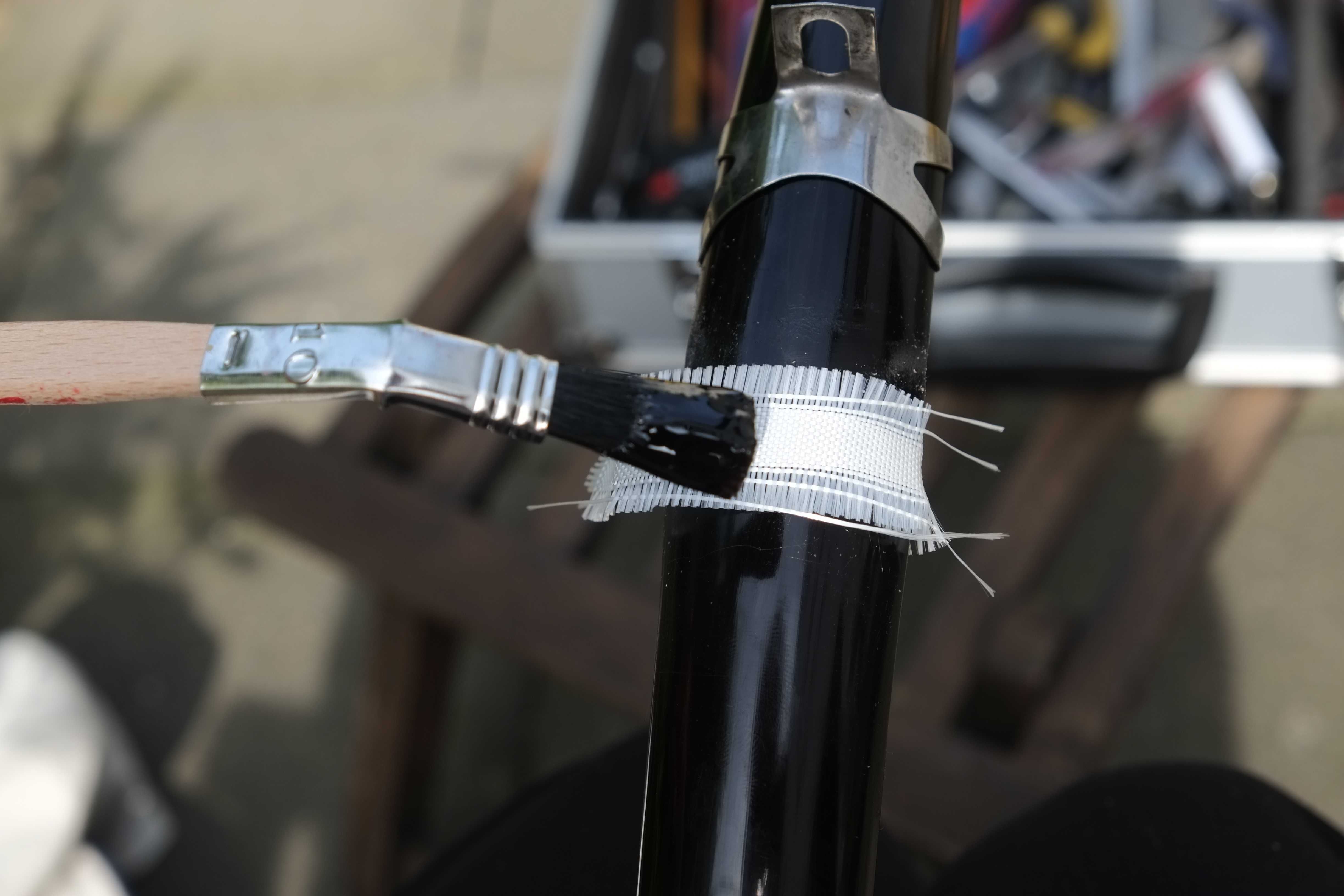 hab das ganze mal ausprobiert, ist nicht gerade einfach den klebrigen kram in den griff zu bekommen. vorallem war die glasfaser leider zu kurz um einmal komplett ums schutzblech zu kommen, aber vllt mach ich noch 'ne zweite schicht.