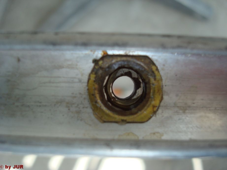 Man sollte m.E. den Winkel relativ genau einhalten, damit die Schraube unter Belastung mit dem Gewinde des Schrägkonus fluchtet. Frei Hand ist das eher etwas für Könner.Bei der Gelegenheit auf den sichereren Schrägkonus umbauen (wofür Du ggf. einen Teilespender brauchst). Entsprechend der Schrägung des Konus absägen, kürzere Schraube, fertig.
