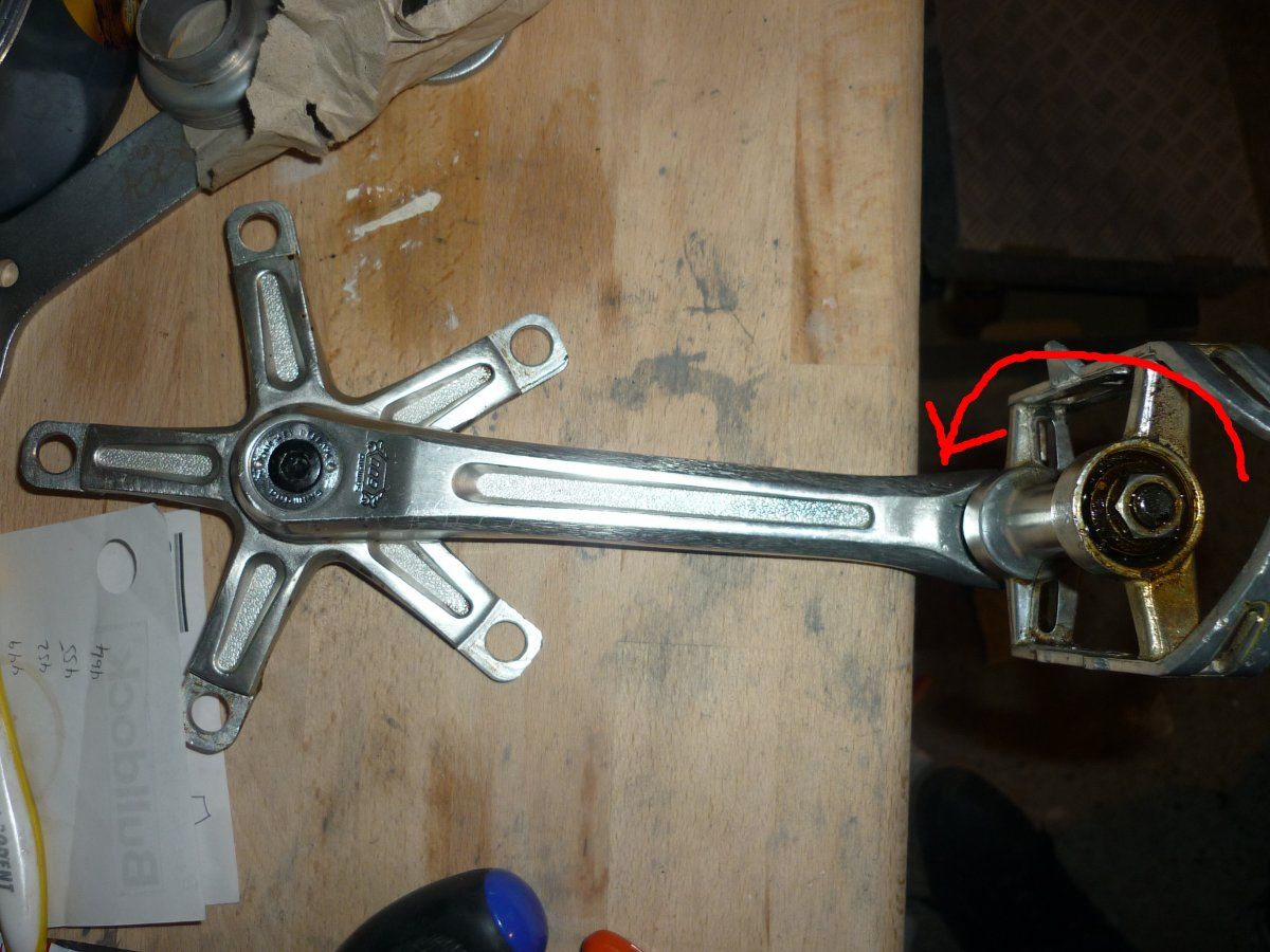 Was man auch machen kann: Schlüssel in den Schraubstock spannen, Pedal einhängen und die Kurbel mit kantholz und Fäustel überreden.