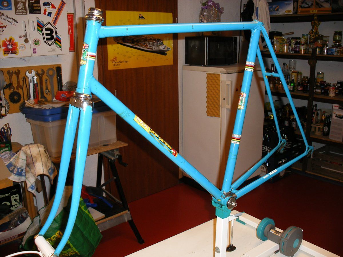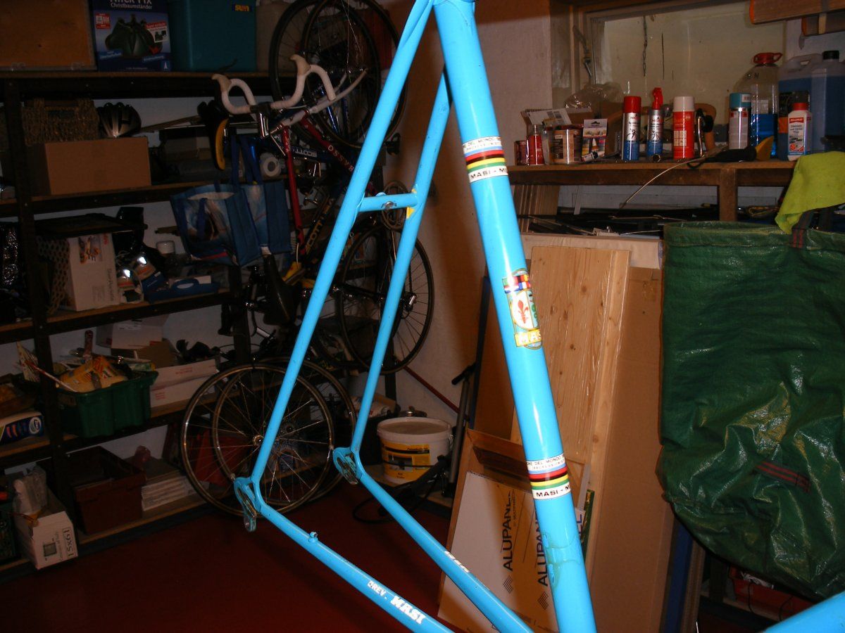 Da das Rad schon 45 Jahre in meinem Besitz ist, dachte ich es wäre mal an der Zeit es wieder auf Vordermann zu bringen. Die Liebe zu alten Rädern ist bei mir auch noch nicht so lange da. Deshalb hing das Masi vernachlässigt im Keller und ich bin lieber erst mit nem BJ 90er Basso Loto , dann später mit nem Scott Pro rumgefahren.