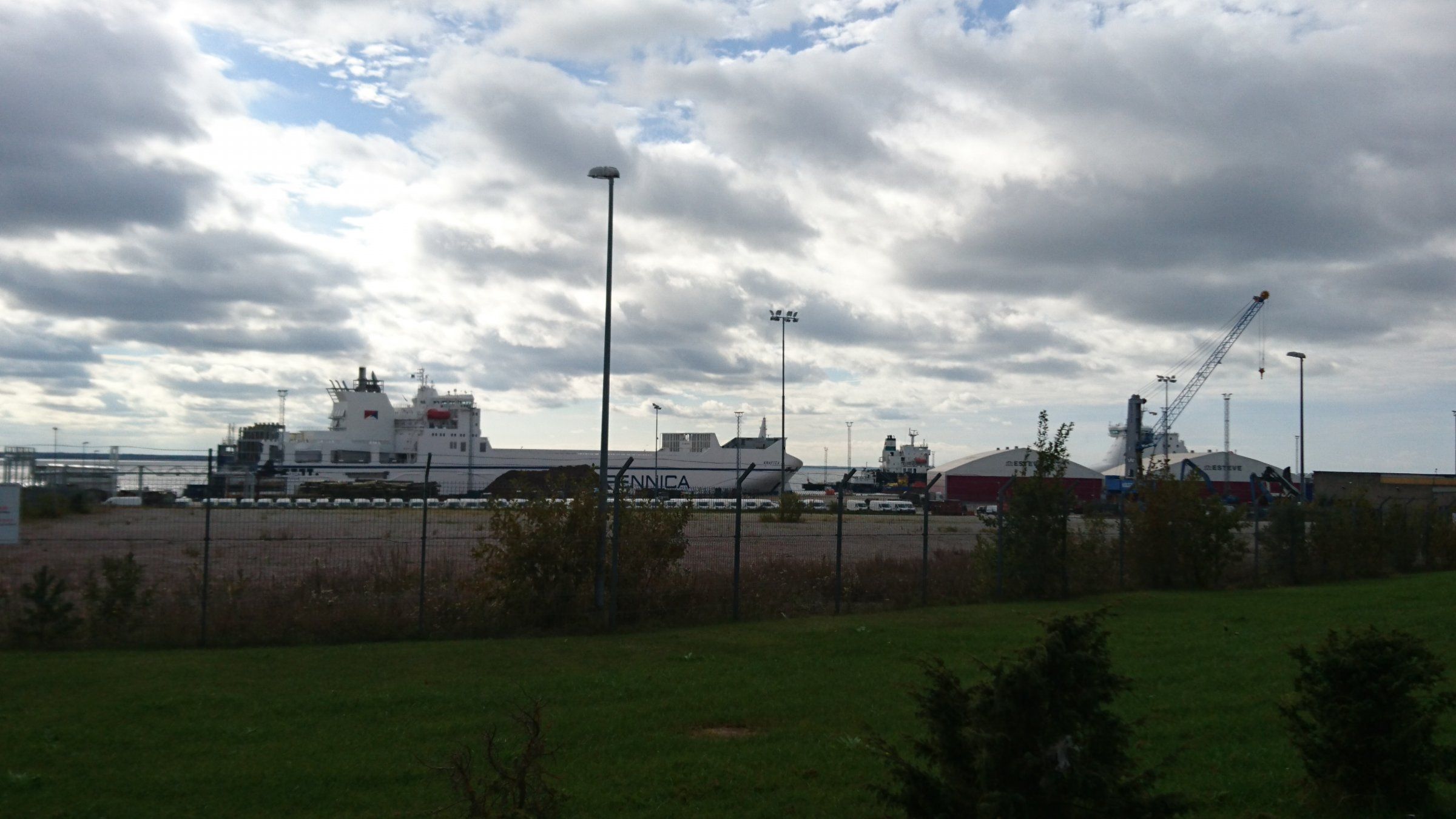 Es war hier ein sehr schöner Tag - ist es jetzt noch. Ergiebg auch. Nachdem ich Zuhause ein paar Sachen wieder an ihren Arbeitsplatz zuruckmontiert habe ging es mit der Bahn bis Endstation im Westen. Paldiski; da wo zu Sowjetzeiten die U-Boote mit Atomwaffen beladen wurden. Am Südhafen lag eine Fähre an. @tourer-hst wird sie vielleicht kennen.