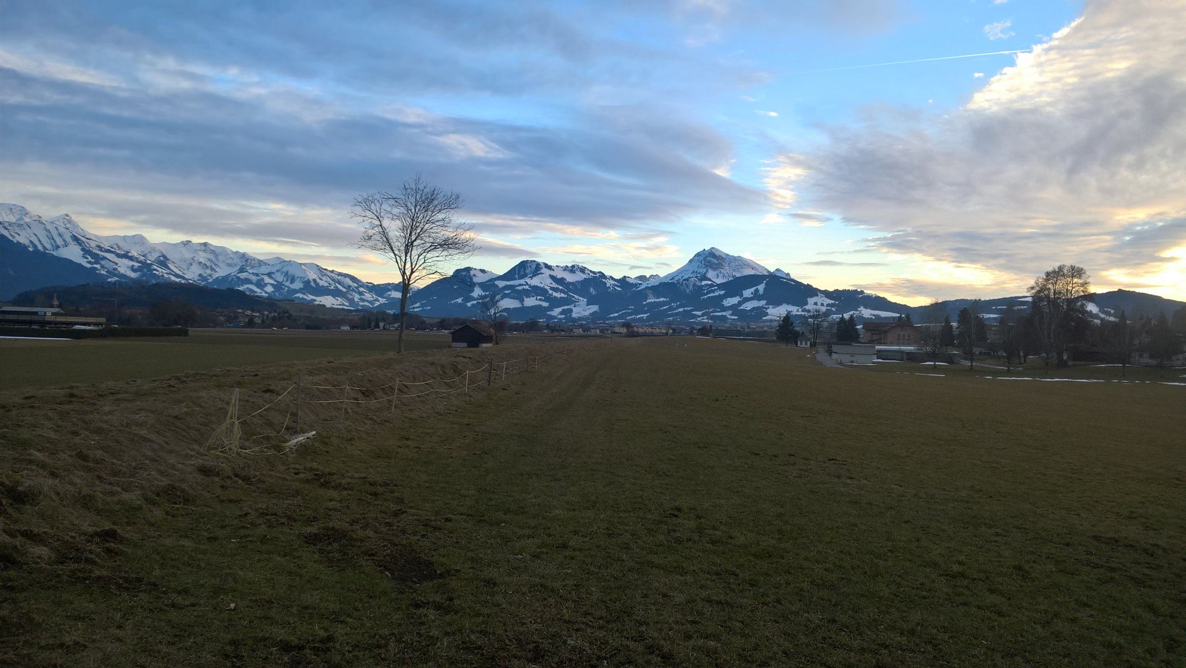 Wenn ich mich nicht täusche zeigt dieses Bild das Panorama Richtung Greyerz (Moléson). Ich mache im Sommer ab und zu Rundfahrten in der Gegend. Du wohnst in einer sehr schönen Gegend. Aus ferner Betrachtung könnte man meinen, dieser Schnappschuss sei aus dem Allgäu. :daumen: