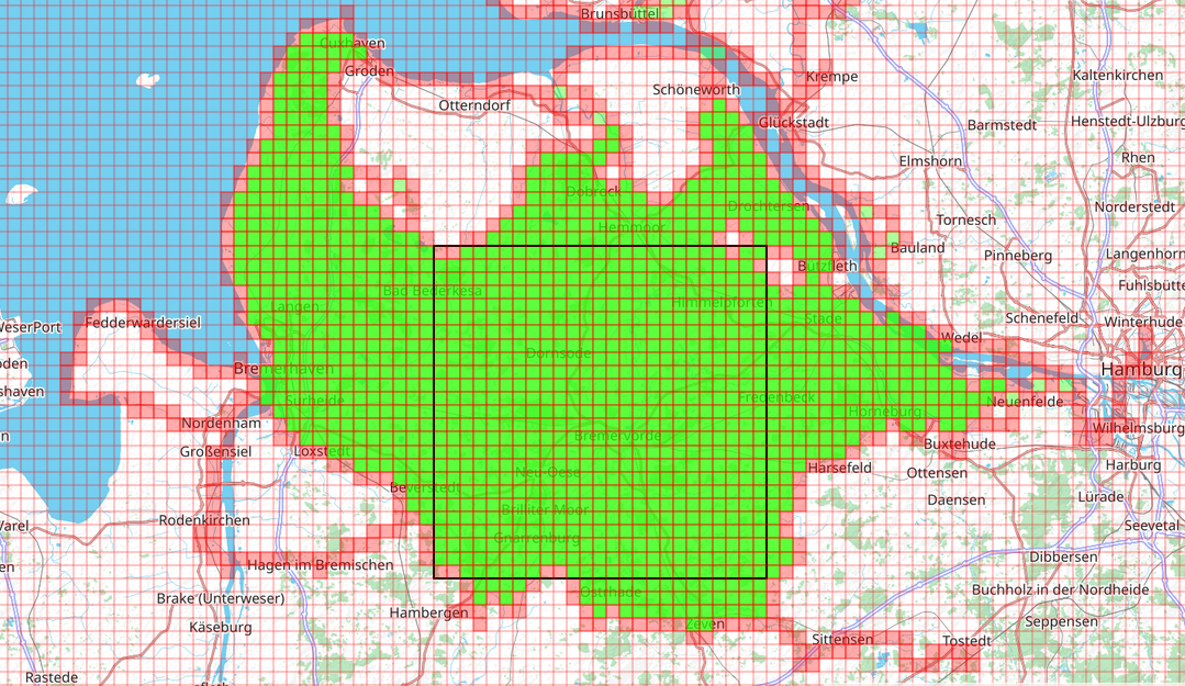 Am Quadrat oben rechts der einzelne weiße Fleck ist nicht erreichbar.