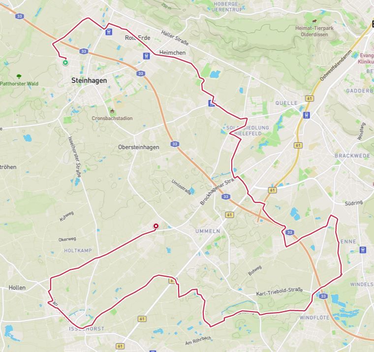 Probiere später zum ersten Mal einen (Heim)Weg über Bielefeld aus. Es gibt leider nur zwei gute Passagen, um über den Berg zu kommen und eine davon wäre mir auch zu sehr befahren.