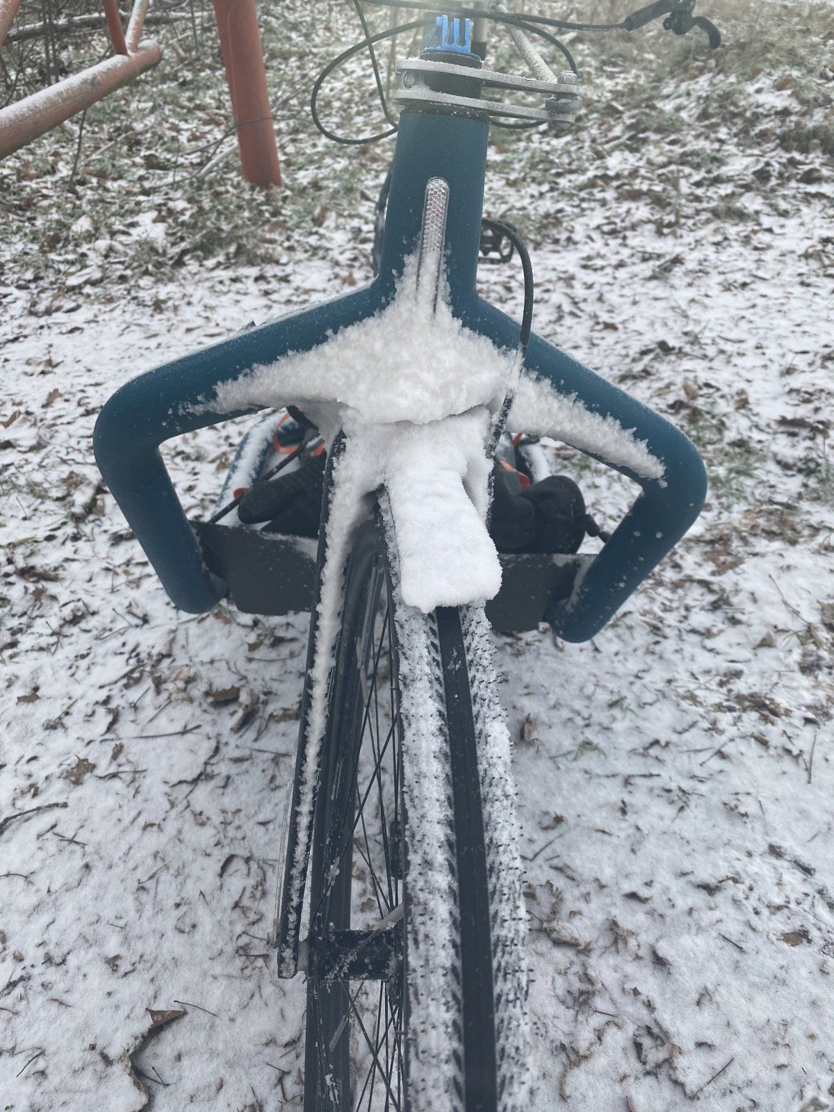 … das Essen war aber hervorragend und da dann irgendwann auch noch der Schneepflug auftauchte, war auch der Heimweg schön entspannt.Sind das die Pathfinder Pro Reifen? Packen die wirklich Schnee?Heute Morgen waren einige Flocken prophezeit, ein paar mehr wurden es dann doch. Bei -3 grad gesund angekommen
