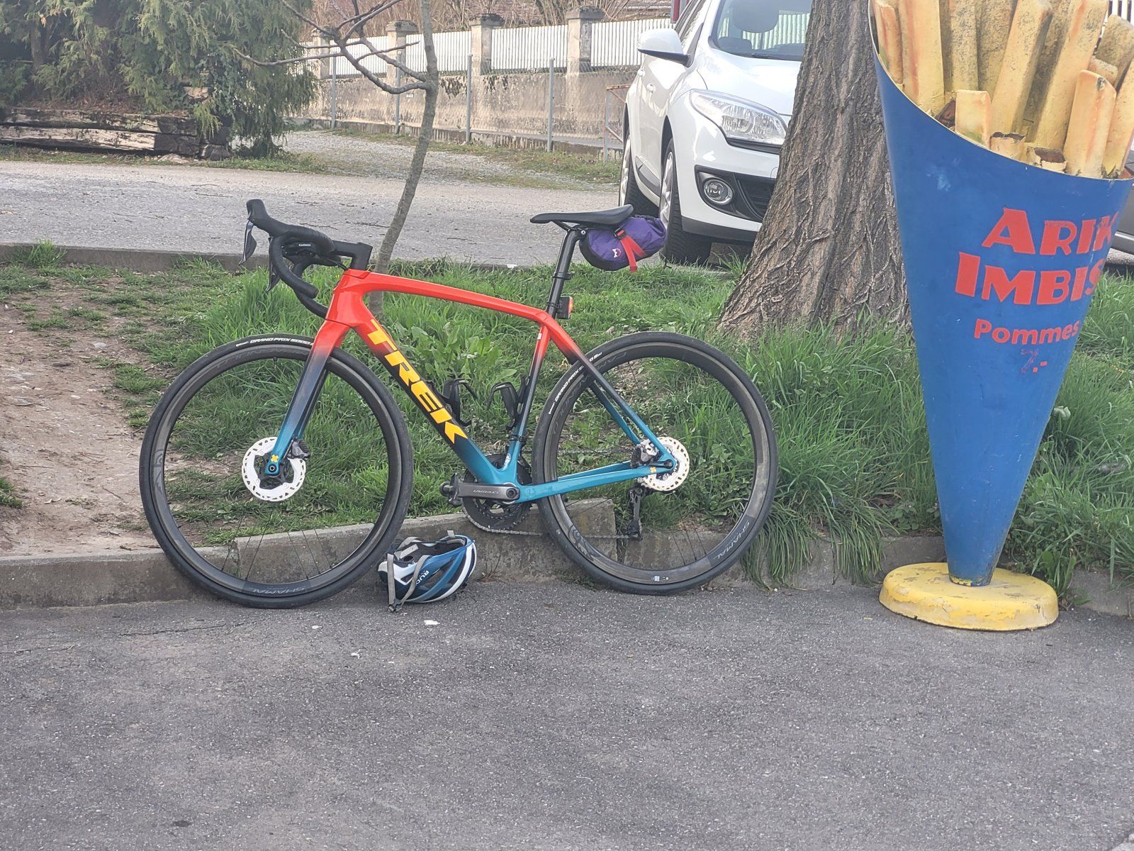 Heute ist es anders. Je näher ich komme, um so mehr Details mache ich aus. Zwei weitere rot leuchtende Rücklichter. Ein Hänger. Der Wimpel schlägt nach links und rechts aus. Mit sichtbarem Schlingern fährt das Rad in das steilste Stück ein. Ganz klar, kein Zweifel: Kein Motor. Respekt.