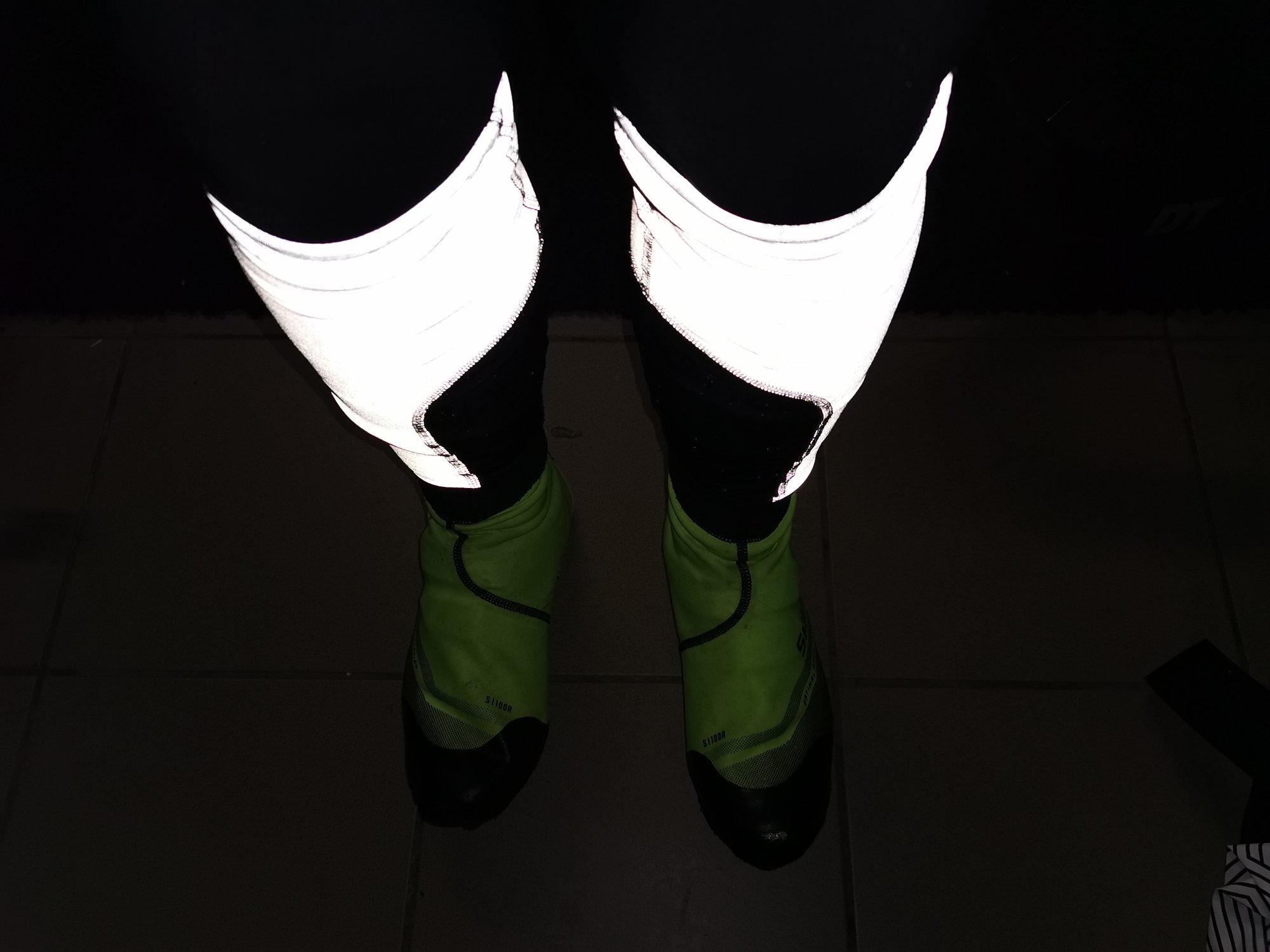 Hab ich gerade heute wieder gedacht, als mich ein S-Pedelecer mit Reflex-Pedalen überholte: Bewegung nahe der Strassenoberfläche fällt einfach viel mehr auf als alles über Hüfthöhe; all die Leuchtwesten etc. sind meiner Meinung nach völlig überbewertet...Schon mal die Sachen ausprobiert, die sich in der dunklen Jahreszeit bewährt haben. Sind reflektierende Armlinge, die ich zu Wadenschonern umfunktioniert habe. Durch die Pedalbewegung sehr hoher Aufmerksamkeits- und damit Sicherheitsfaktor.