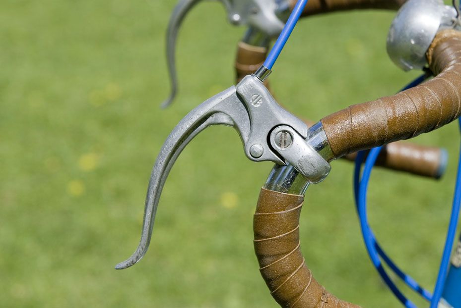 Wahrscheinlich war die Jacke nicht lang genug....... Hab Streifen aus ner alten dünnen Lederjacke geschnitten, ........ Mir hat's gut gefallen, aber warum ich nicht näher an die Bremsgriffe rangewickelt hab (bzw. davon weg), weiß ich nimmer. Aber das Radl ist leider eh schon gegangen…