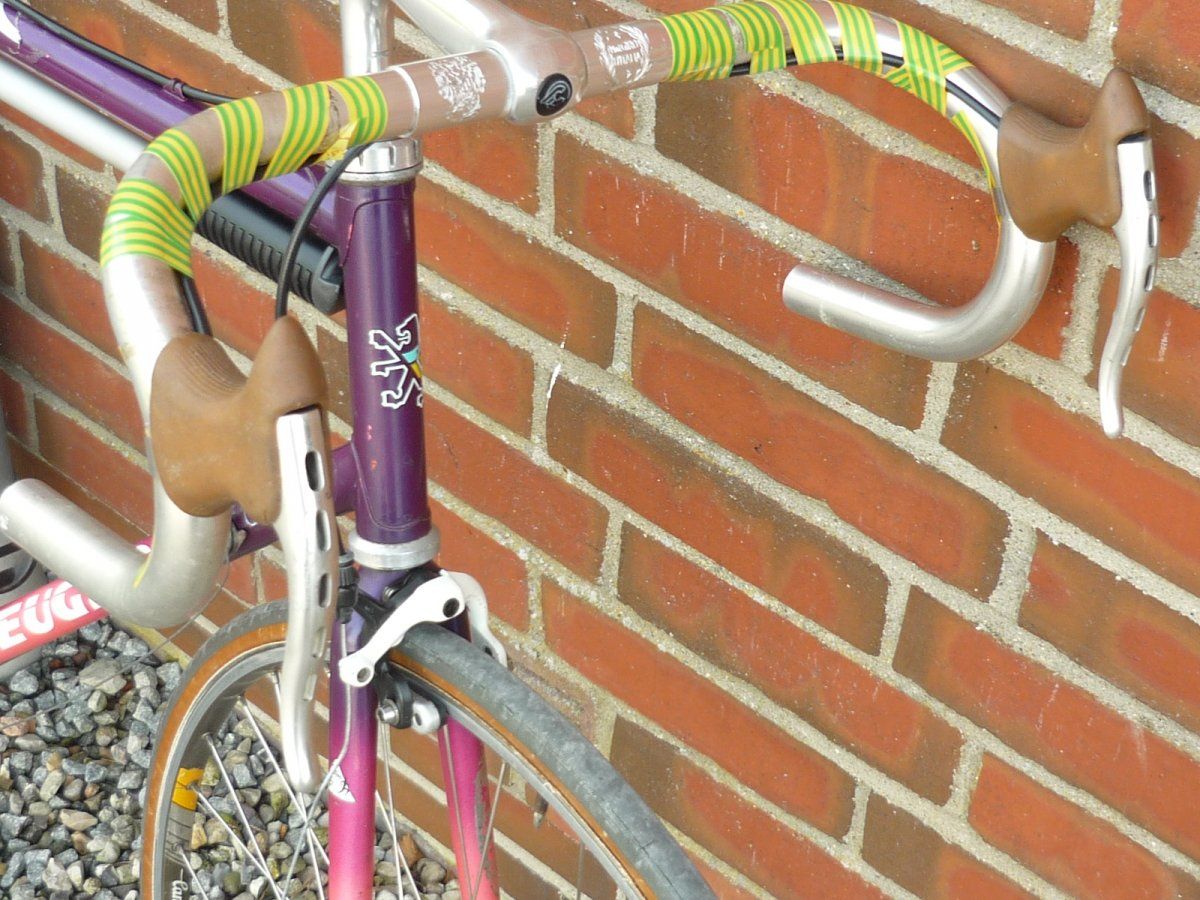 Die Peugeot fuhren immer gut, auch sind sie immer schön gerade und plangefräst...das muss man denen lassen. Bin ich von meinen Gitanes und Motobecanes leider nicht so gewöhnt, die müssen noch mal zum Doktor...Ich hab's heute mal zusammengestöpselt, so dass es grad für ne Probefahrt gereicht hat - Geil, so modernes Zeug. Es gibt natürlich noch viel zu tun, Züge nehme ich komplett neu, das jetzt montierte Zeug sind irgendwelche Reste, die Bremsen sind vielversprechend, harmonieren aber nicht mit den Dia-Compe-Hebeln. Das war soeben Anlass, die passenden Bremshebel und dann gleich noch das Mavic-Schaltwerk zu kaufen, ist auch schon wieder egal...