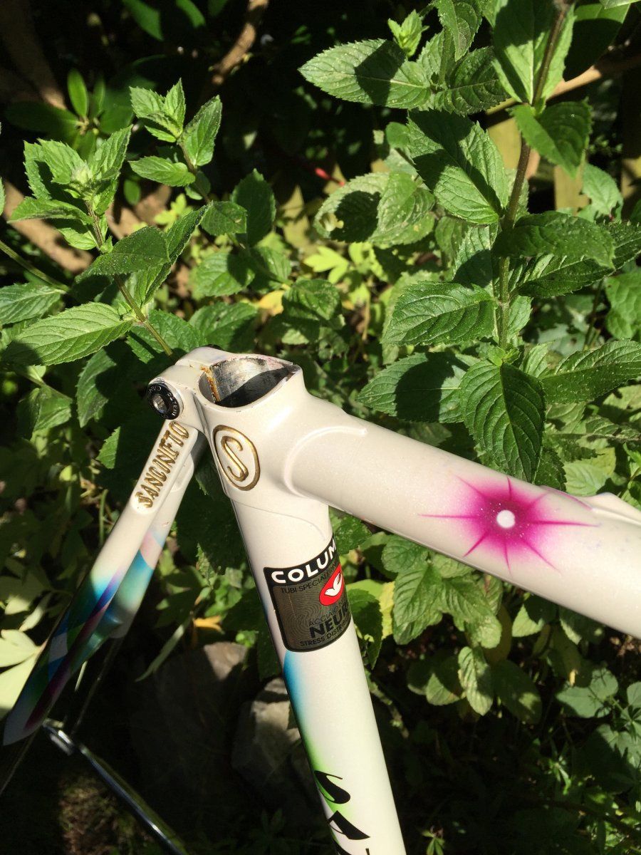 Von einem netten Herren aus Ratzeburg gekauft, der die alten Rennradbestände des verstorbenen Onkels auflöst. Darunter dieser vermutlich nie aufgebaute Rahmen, der bis auf einiger kleiner Lagerspuren keine Makel aufweist - Bis auf die Sora Kurbel natürlich... ;)