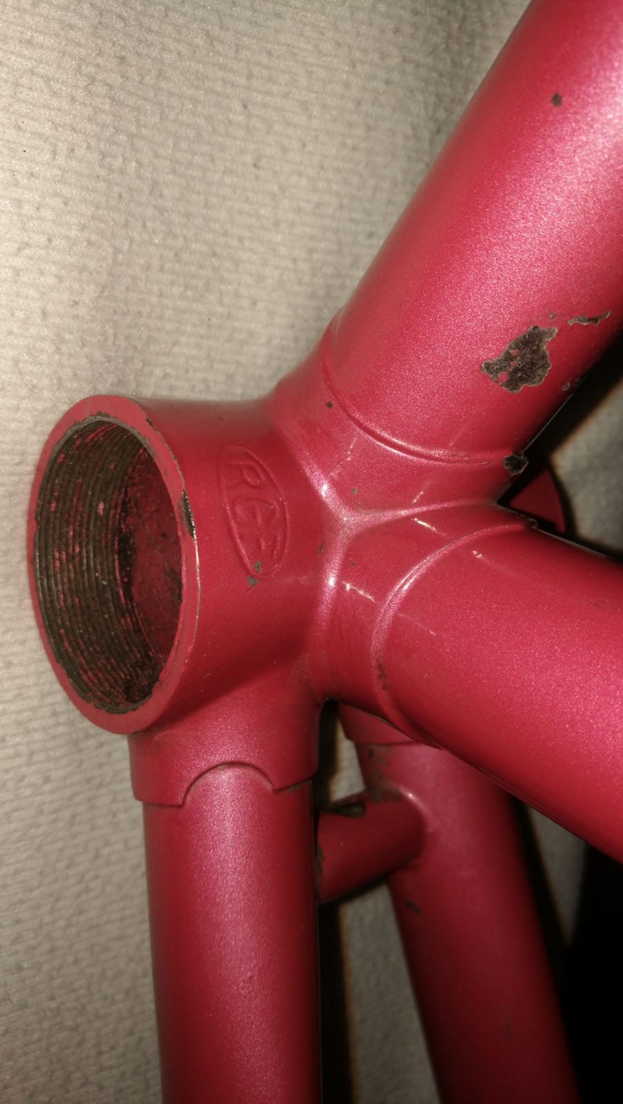 Ist was für Franzosenliebhaber, die Stronglight Kurbel ist tatsächlich eine echte 107 Piste (war sündteuer ;() , erkennbar an der nach unten versetzten Aufnahme für das Kettenblatt. Das Kettenblatt ist eins in NOS und tatsächlich ein spezielles Bahnblatt, sprich dicker als die normalen Stronglightblätter. Die Kurbelschrauben sind auch spezielle Piste, ebenfalls NOS.