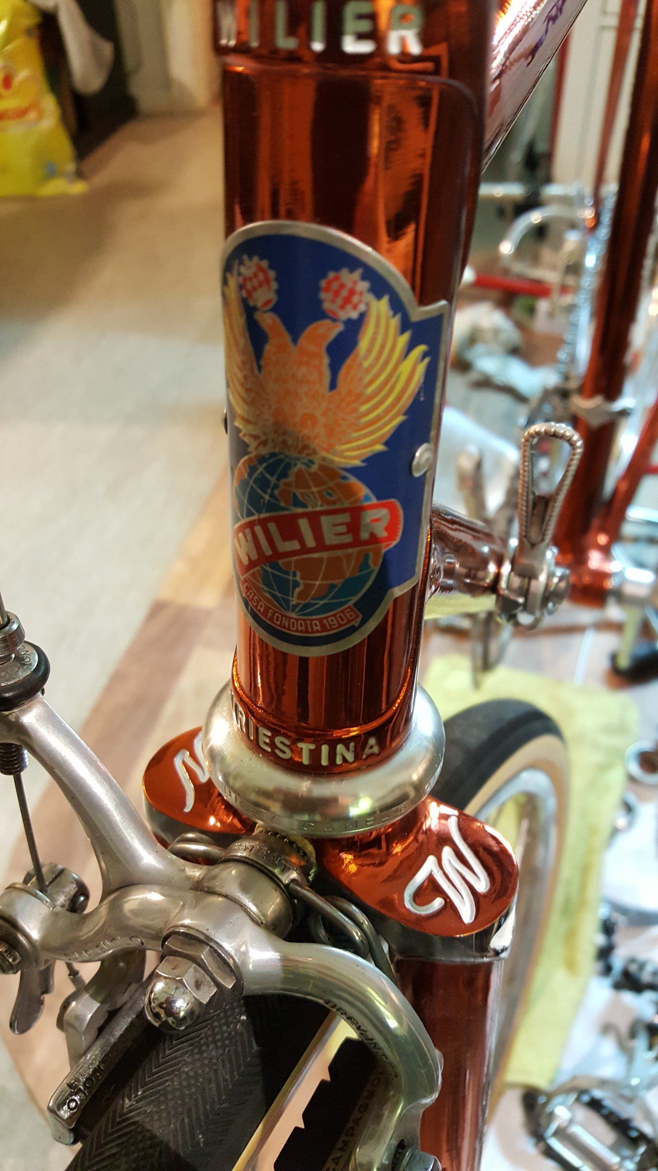 Hier sehe ich naturbelassene ehrliche Oberflächen an den Komponenten, der Rahmen ist die einzige Farbe am Rad. Lenkerband perlmutt, Bremszüge auch.