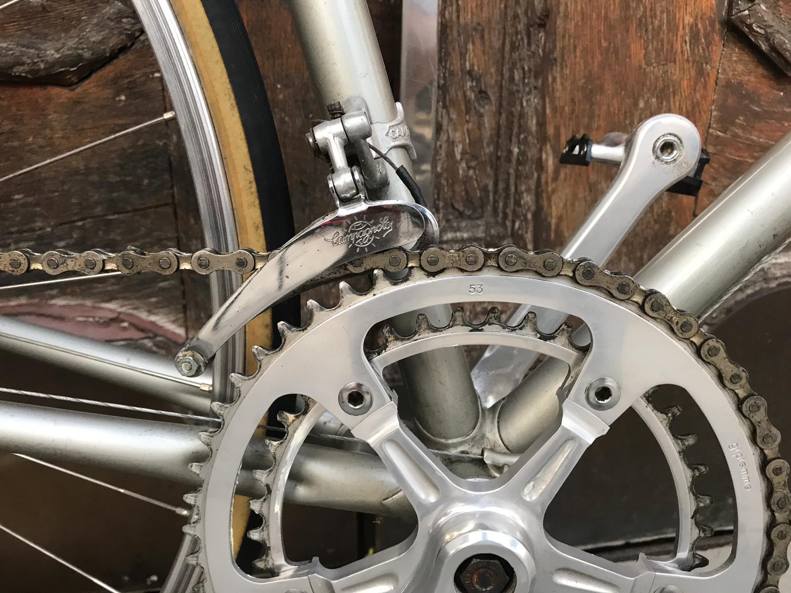 Ich glaube jedoch nicht, dass Wolfshohl mit diesem Schaltwerk, das aktuell an seinem Rad verbaut ist 1965 die Vuelta gewonnen hat. Ich tendiere also dazu die verbaute Simplex Schalterei dran zu lassen. Kann mir jemand sagen, ob man an den Simplex Teilen das Baujahr bestimmen kann?