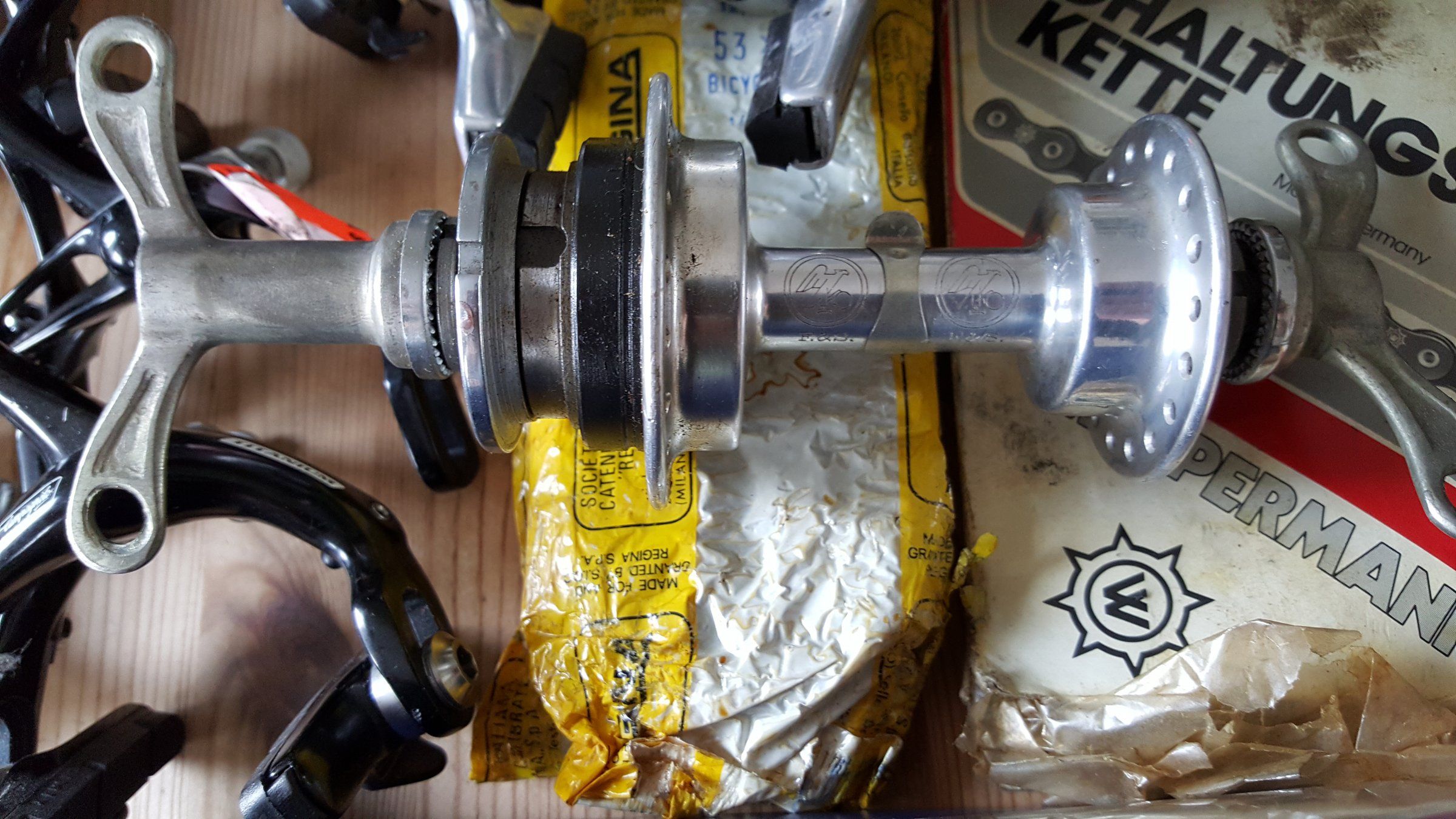 Sorry, Schaltwerk und nicht Umwerfer, hab wieder mal in anderer Sprache gedacht, wo es ja nur vorderen und hinteren Umwerfer gibt (wurde korrigiert). Wusste natürlich auch nicht, dass es ein 73er Schaltwerk ist. Der Verkäufer hat mir gesagt, dass er das Velo von der Familie eines verstorbenen Radrennfahrers hat.Im Ernst, ein 73er Super Record-Schaltwerk? Krasse Sch****. Das hab ich ja noch nie gesehen.