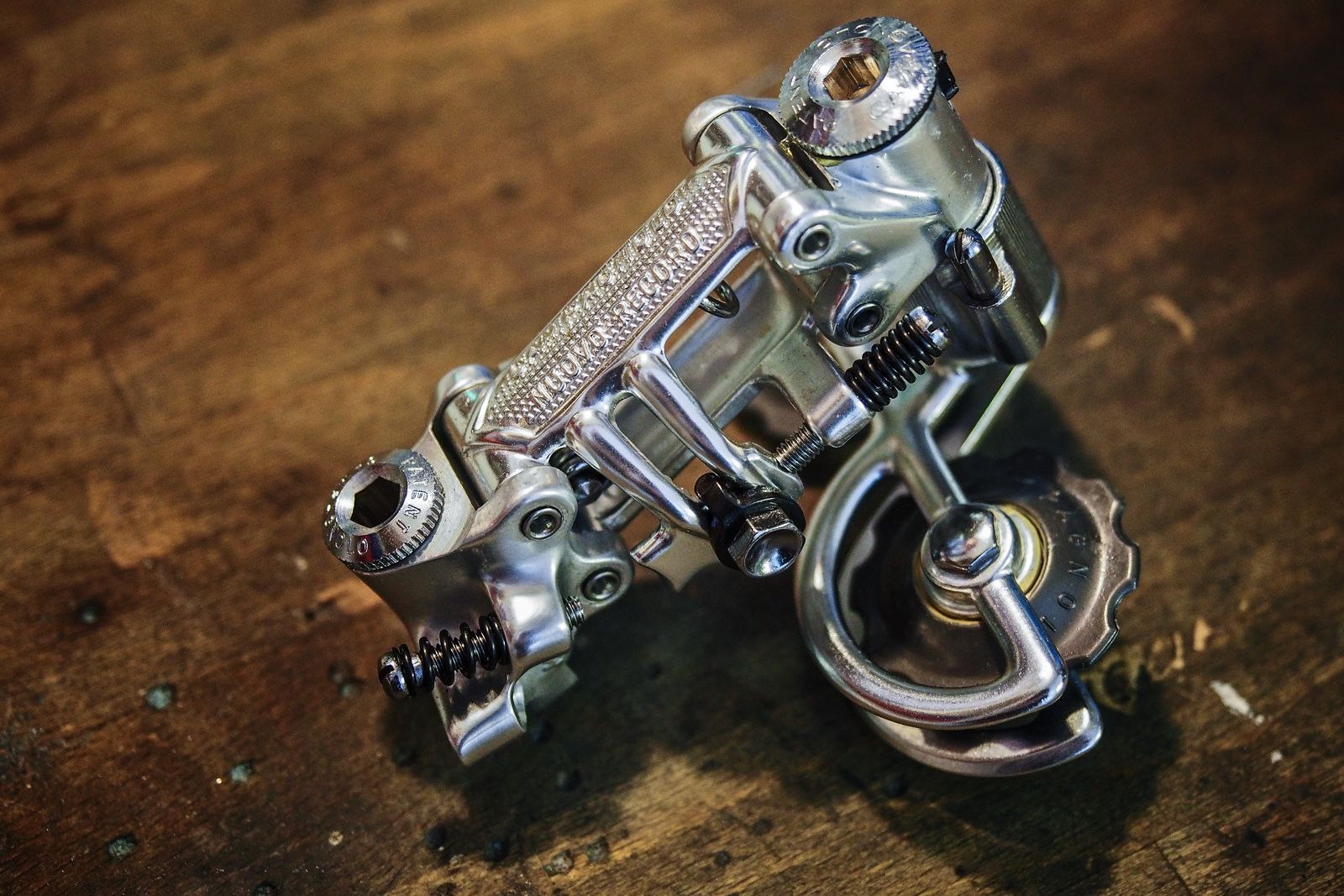 Mir fehlt nicht nur der passende Rahmen, sondern auch der Rest in NIB dazu. Und ehrlich gesagt, ein Rad aus lauter Neuteilen aufzubauen ist ja auch schon etwas langweilig. Mein Nishiki Olympic Royal geht in die Richtung...man wagt sich ja kaum so etwas bei einer Klassiker Ausfahrt durch den Regen zu fahren. Von daher reicht mir ein Schaltwerk als Blickfang! (Ich wollte mir den weiteren Erwerb von Campa NIB Teilen wenigstens ein wenig ausreden..)...hast Du nicht noch einen "NIB-Rahmen", an (nicht in) dem das SW Platz fände...? ?