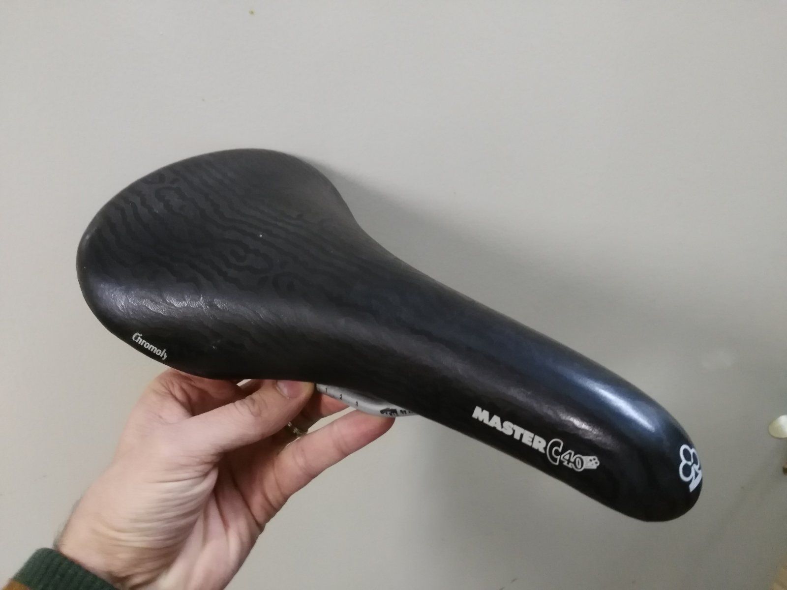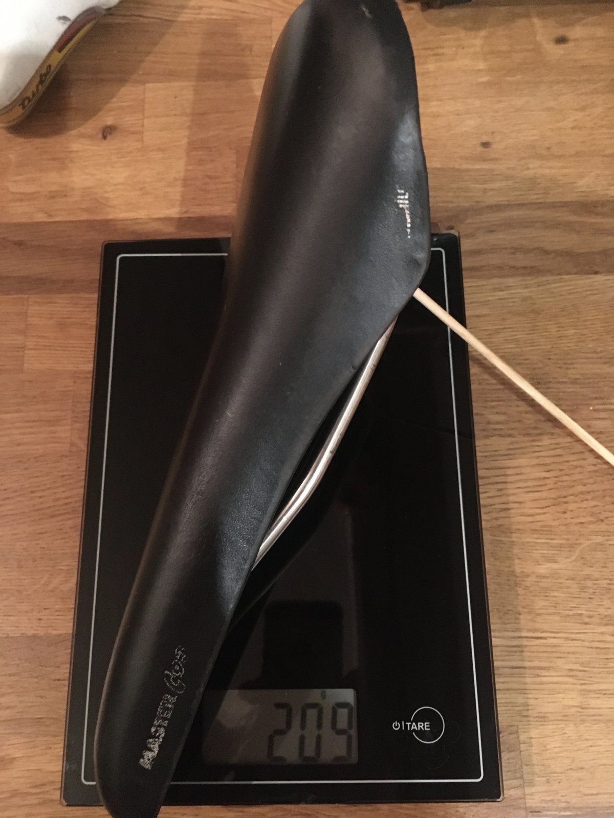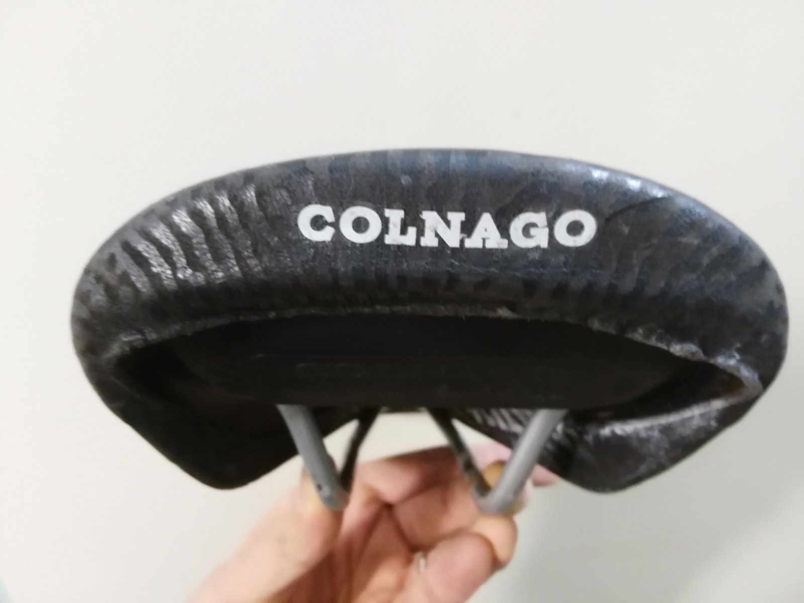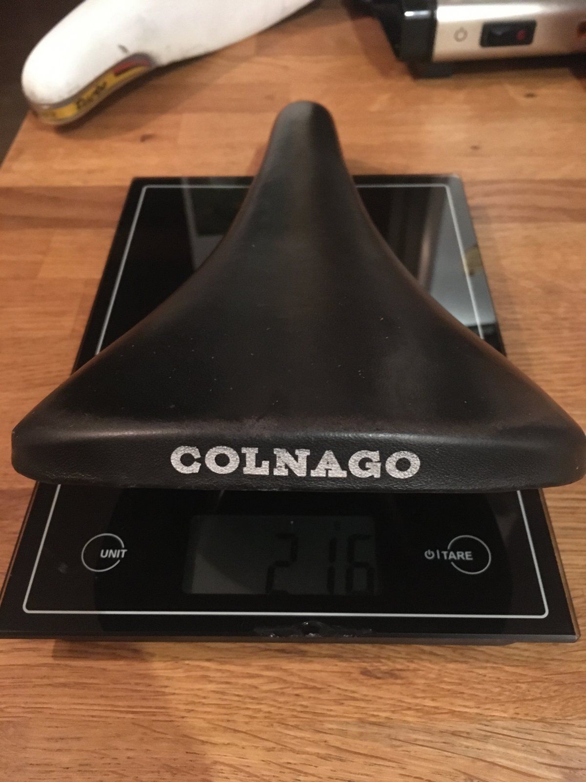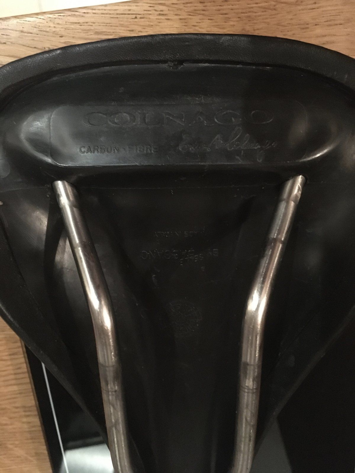 Mein erster Gedanke war ...der gehört wohl an ein Colnago Sport ? Der zweite Eindruck hat mich dann echt überrascht? Es handelt sich um einen Sattel von Selle Bassano, Colnago gelabelt, Titanrails, Tachouhr steht auf 1992, mit der Bezeichnung Master C93. Ziemlich leicht ist er auch noch mit 216g. Zustand ganz gut. Ich hab mal darüber gewischt. Erstaunlicherweise war dies auch mal wieder so ein Sattel auf dem weiße Punkte waren. Ich bin der felsenfesten Meinung das ist Dispersion Wandfarbe. Der Sattel stammt von einem Wohnungsrad. Weiß jemand an welches Modell der gehört?
