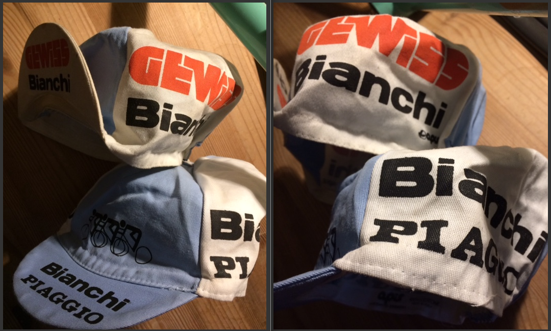 88 hatte die Gewiss-Mütze auf einer Seite noch ein kleines Fina Logo.Gewiss-Mütze von zwischen 1987-1989 und eine